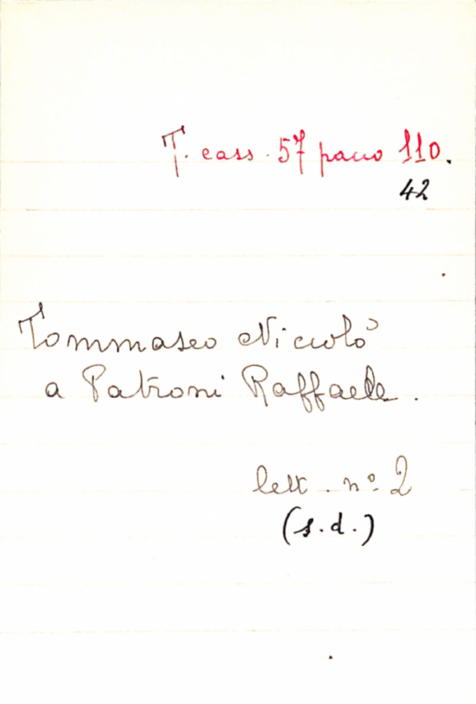 Fascicolo Tommaseo, Niccolò a Patroni, Raffaele