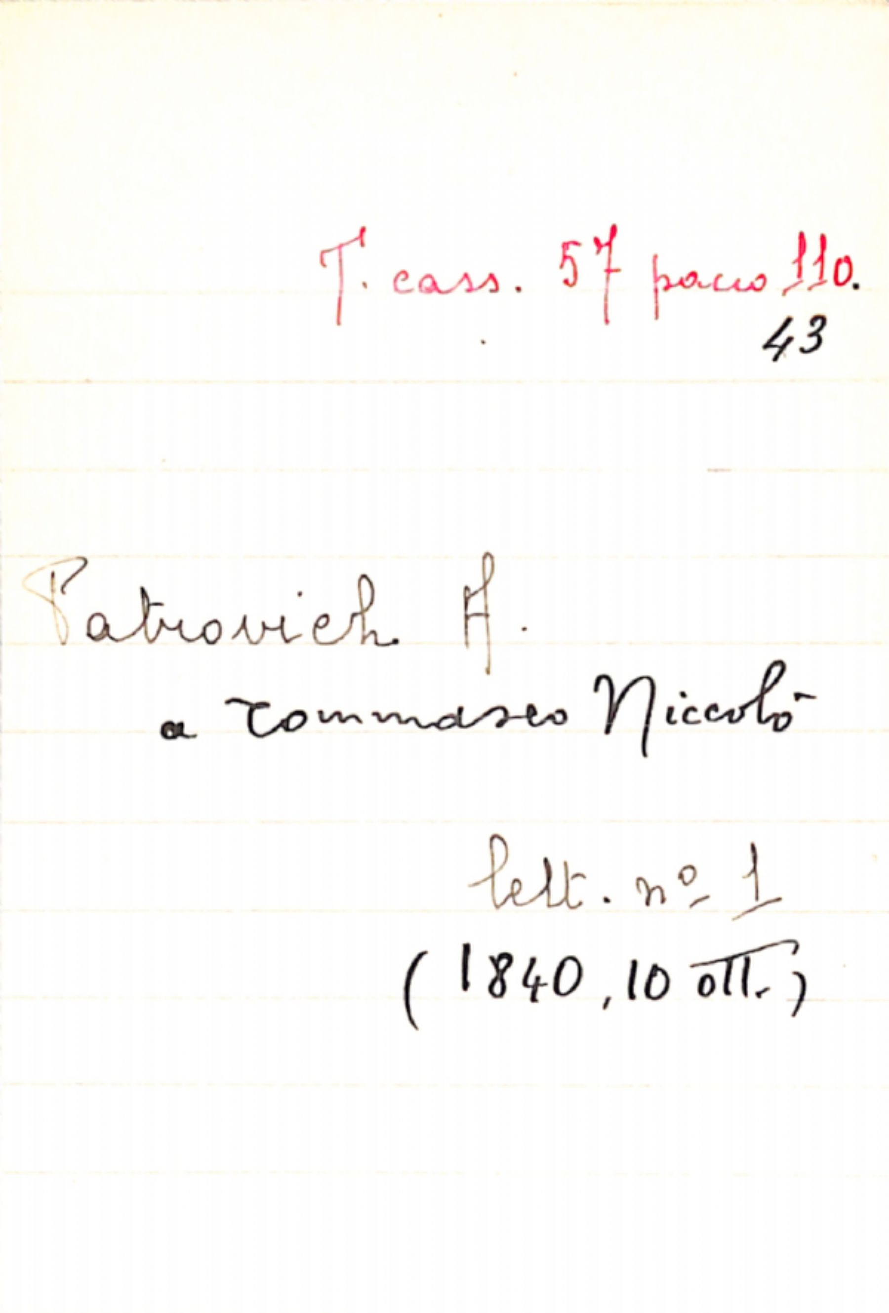 Fascicolo Patrovich, A. a Tommaseo, Niccolò