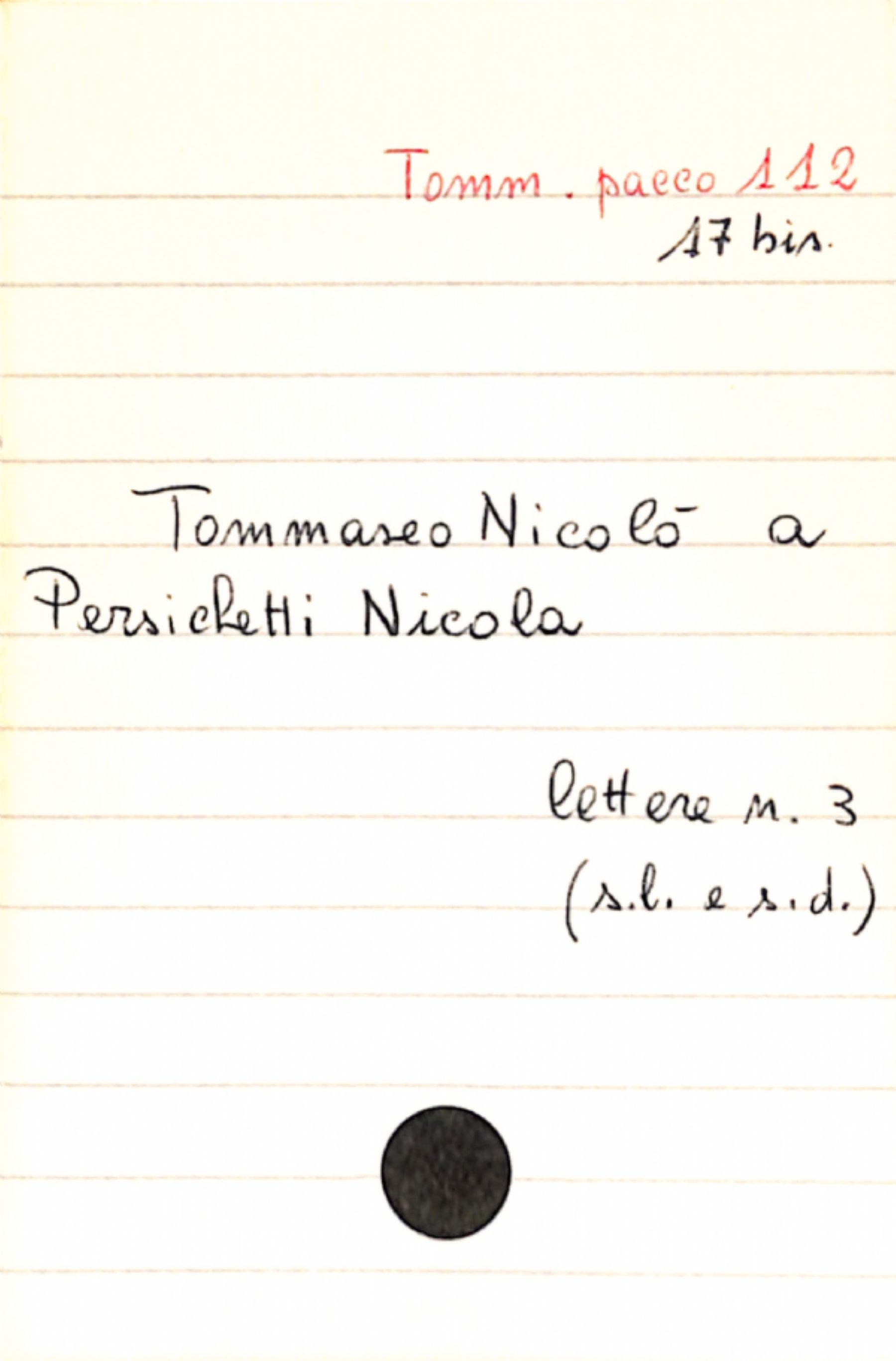 Fascicolo Tommaseo, Niccolò a Persichetti, Nicola