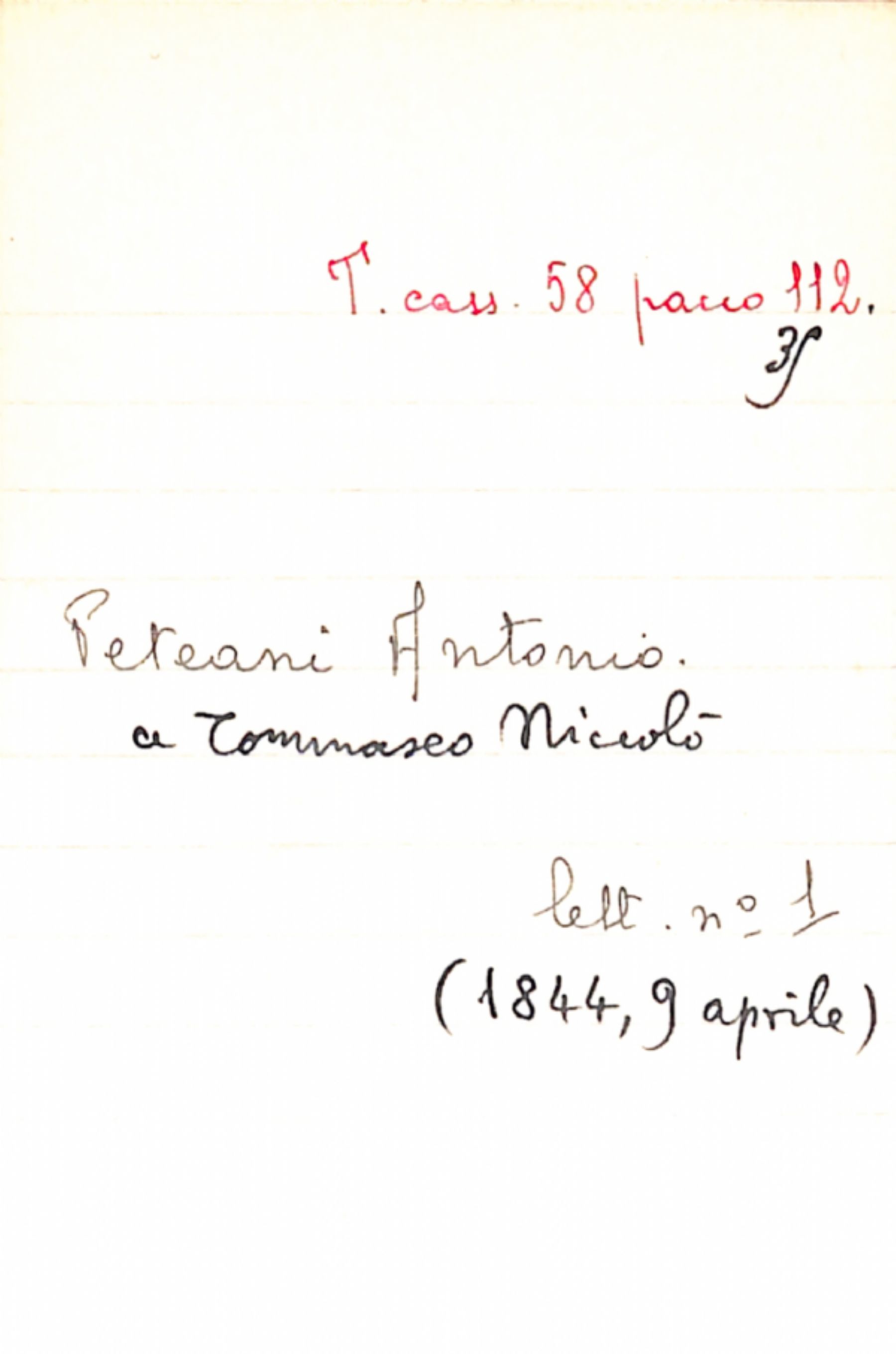 Fascicolo Peteani, Antonio a Tommaseo, Niccolò
