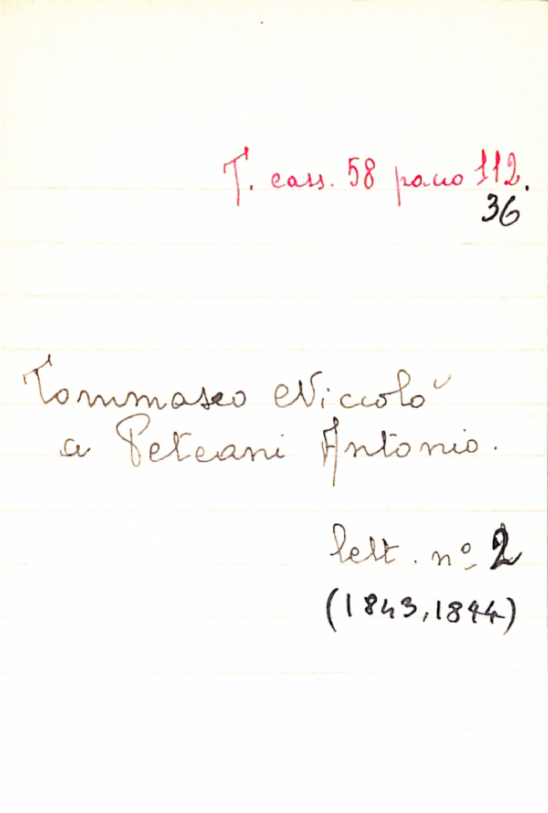 Fascicolo Tommaseo, Niccolò a Peteani, Antonio