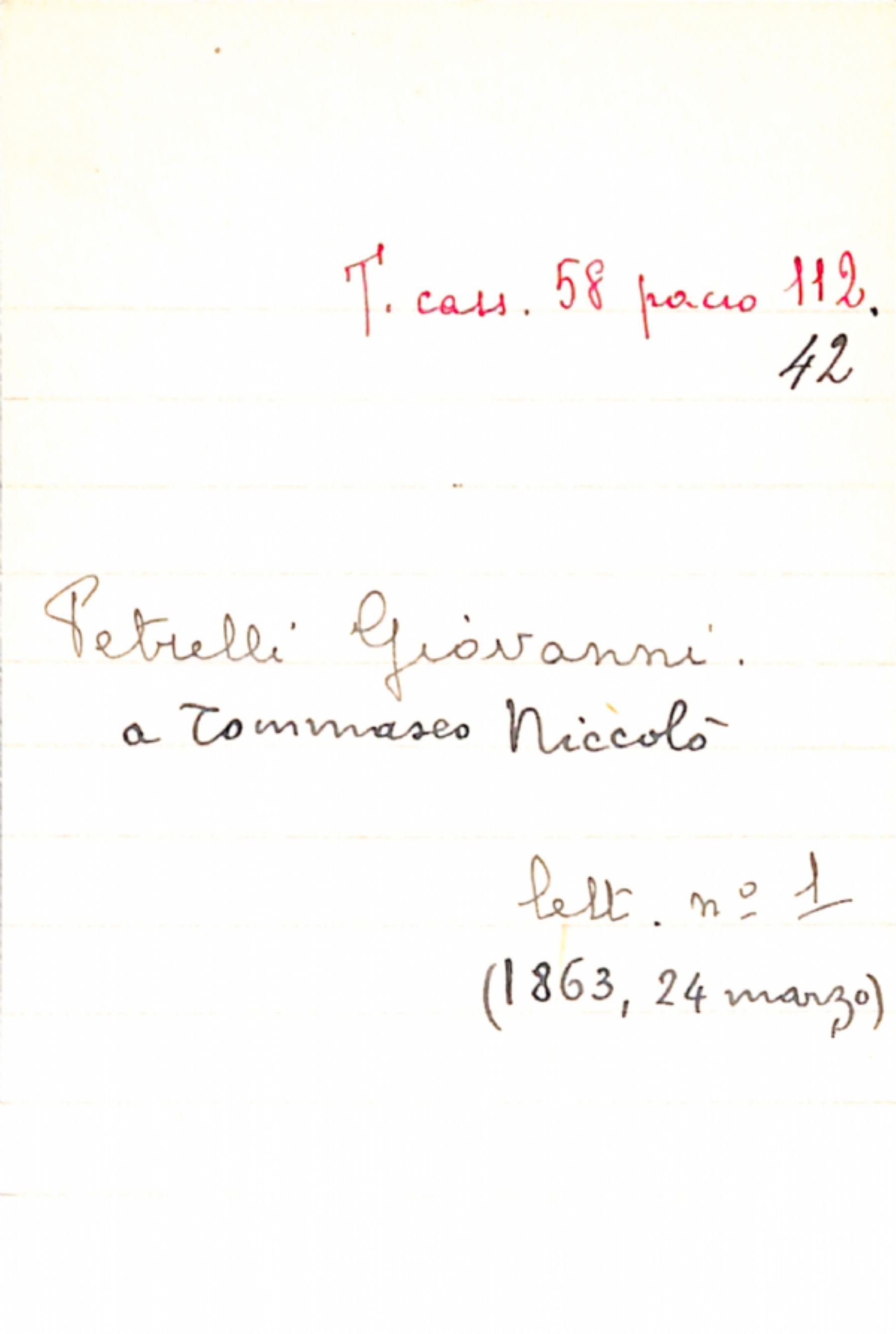 Fascicolo Petrelli, Giovanni a Tommaseo, Niccolò