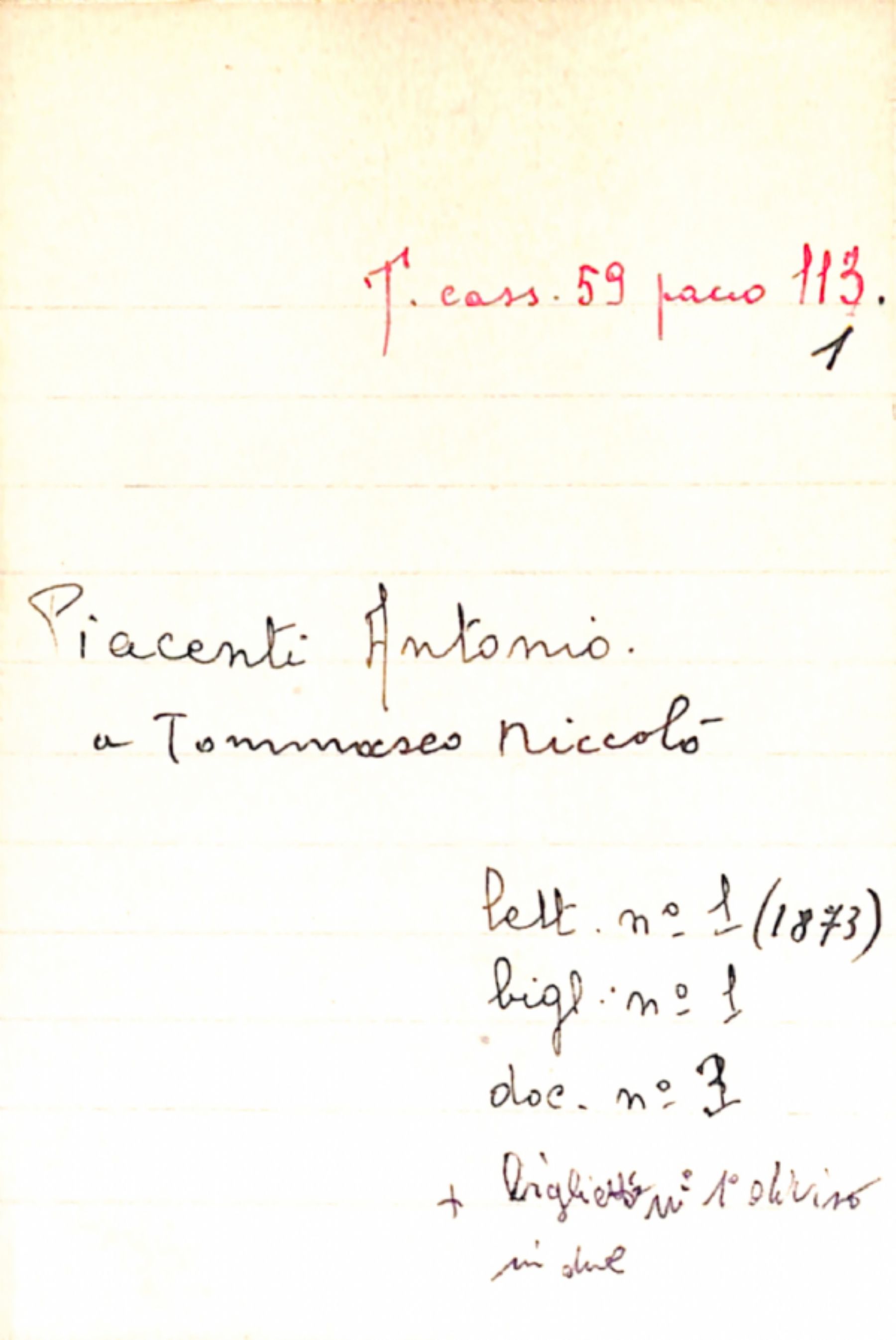 Fascicolo Piacenti, Antonio a Tommaseo, Niccolò