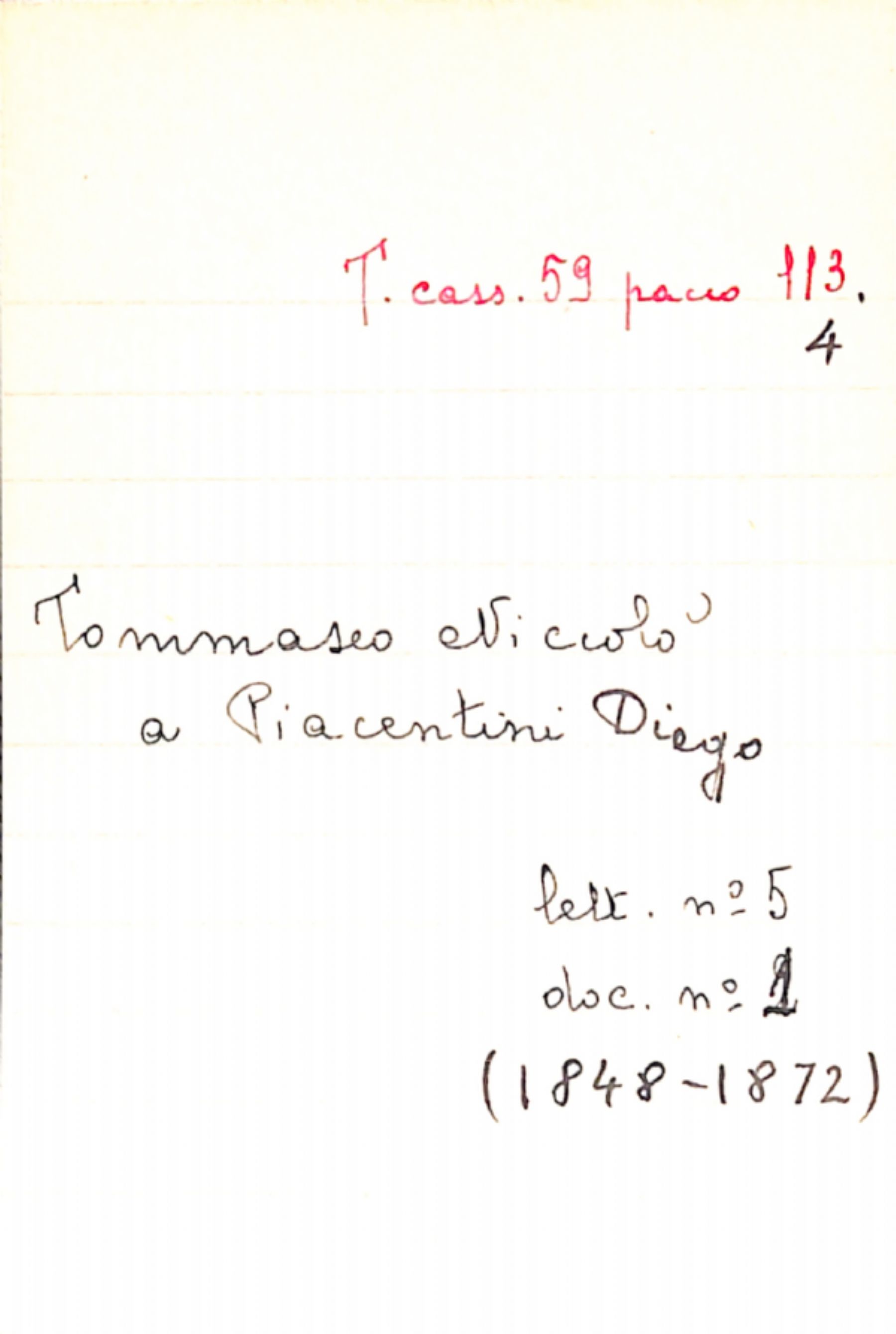 Fascicolo Tommaseo, Niccolò a Piacentini, Diego
