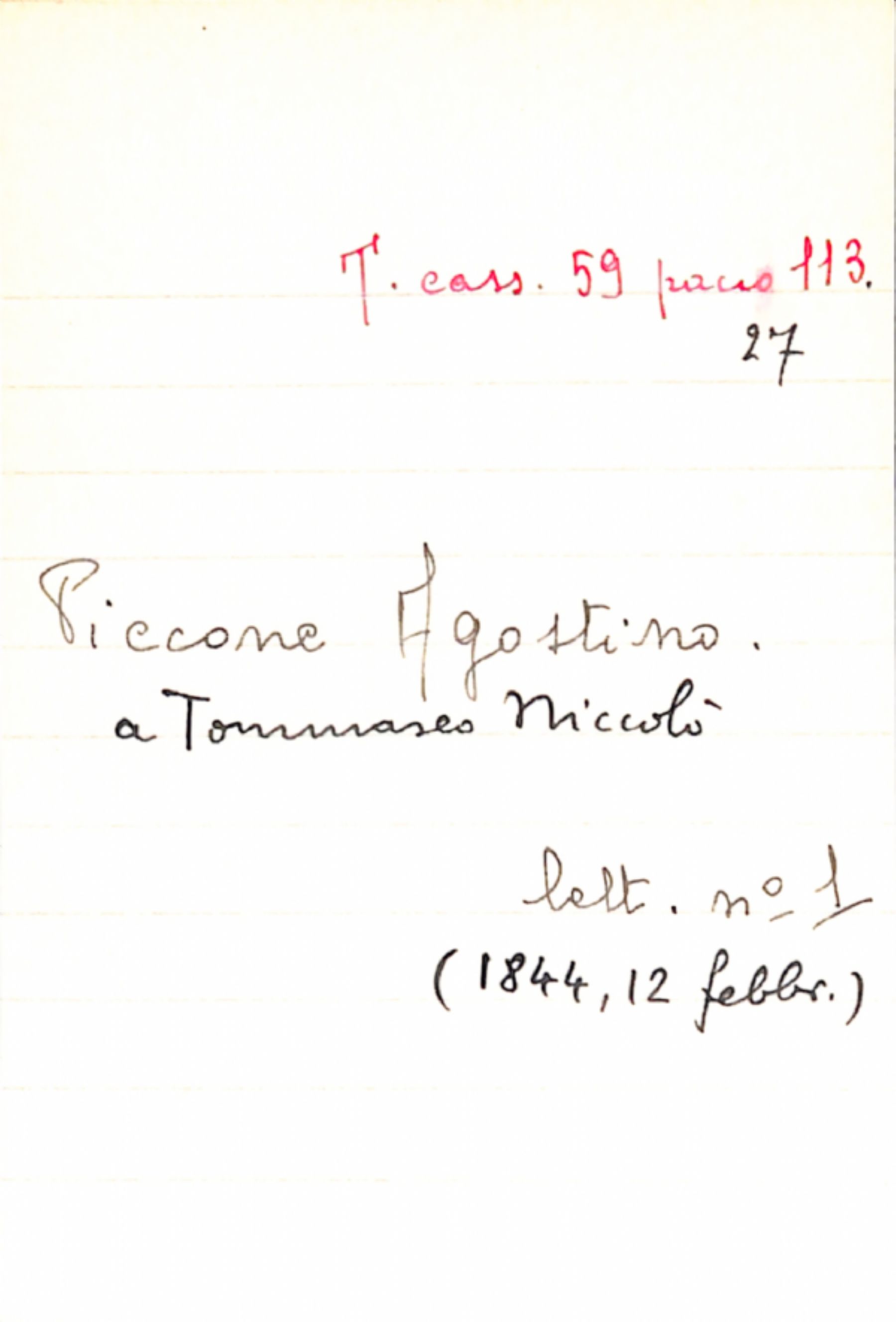 Fascicolo Piccone, Agostino a Tommaseo, Niccolò