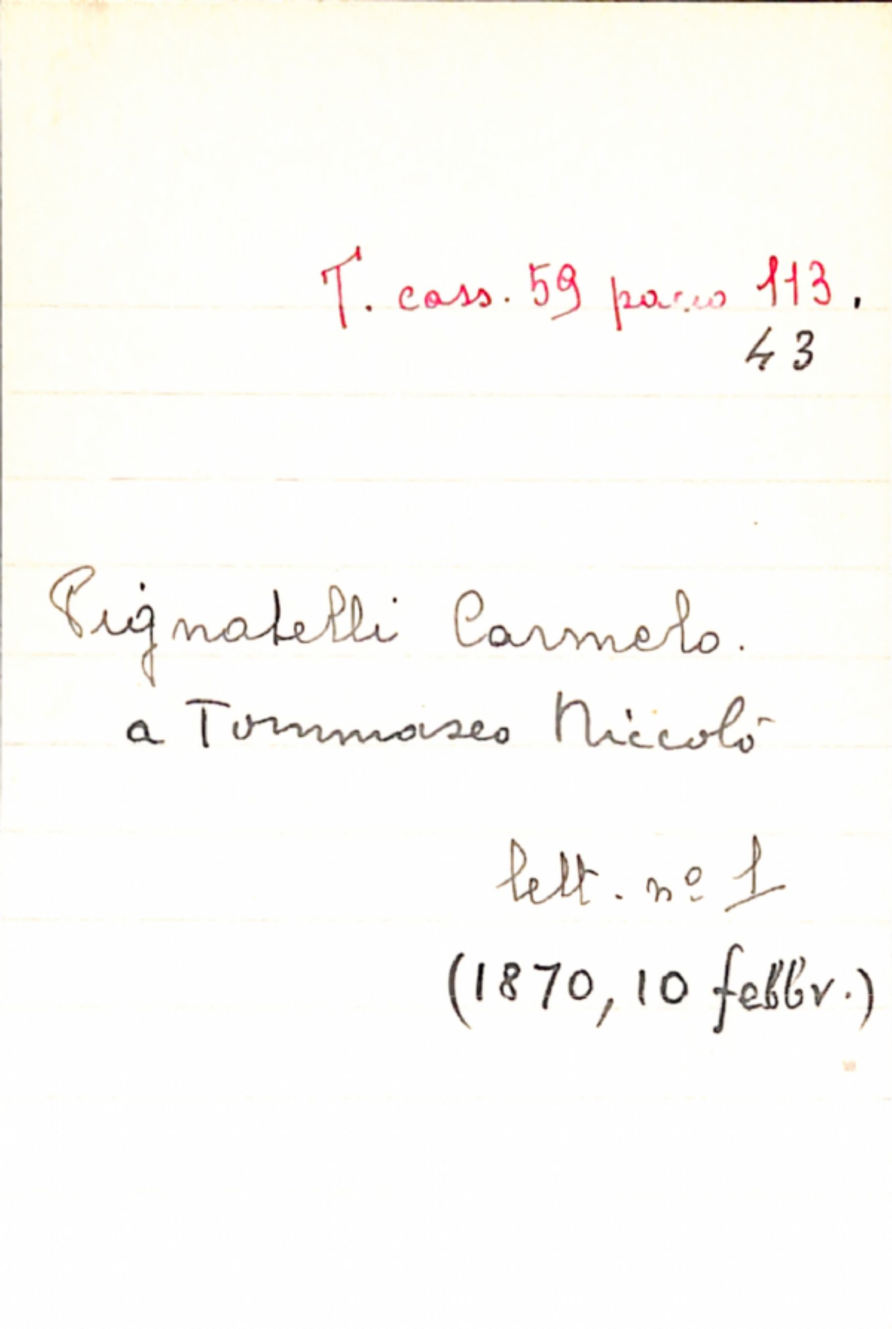 Fascicolo Pignatelli, Carmelo a Tommaseo, Niccolò