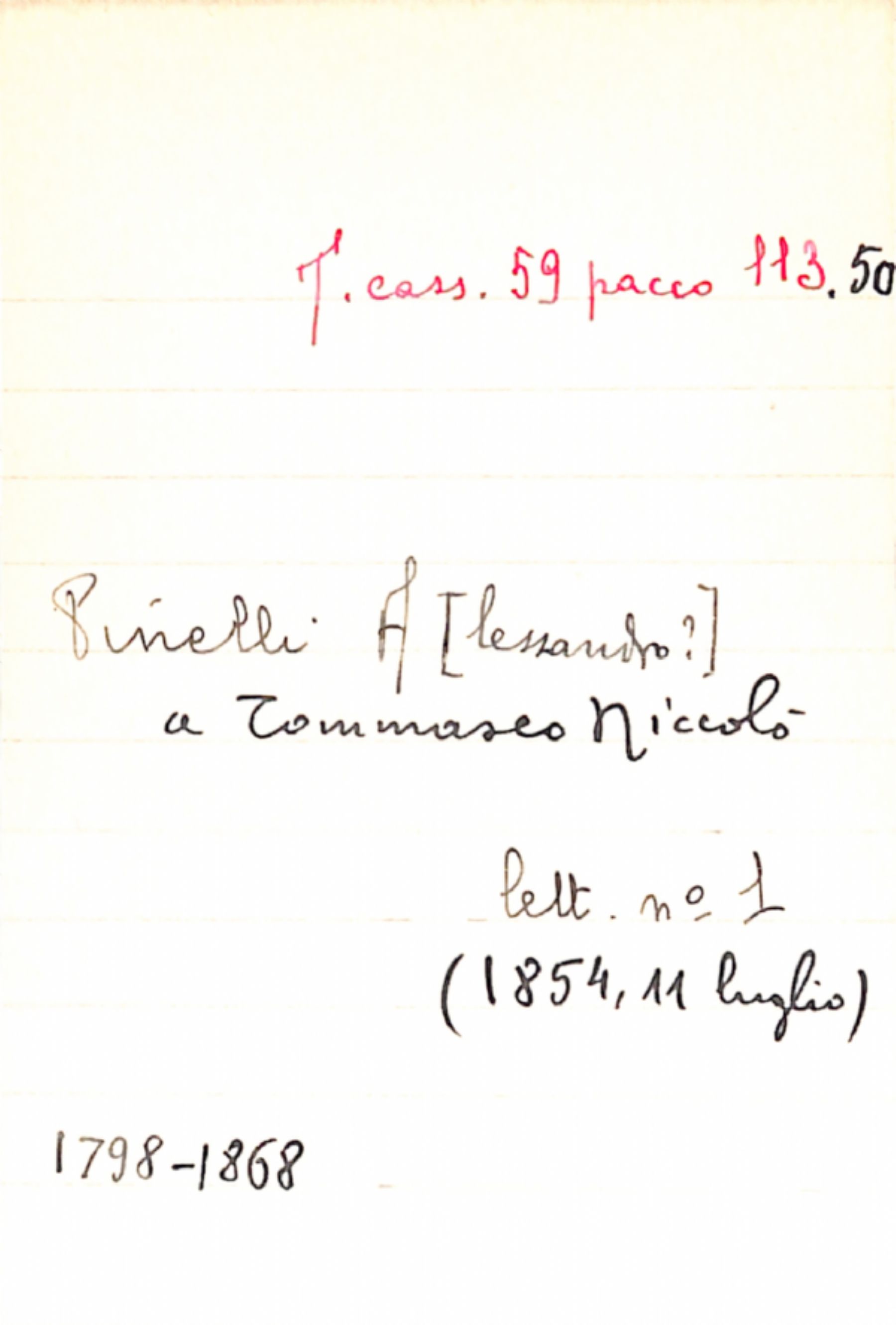 • Pinelli, A[lessandro?] a Tommaseo, Niccolò