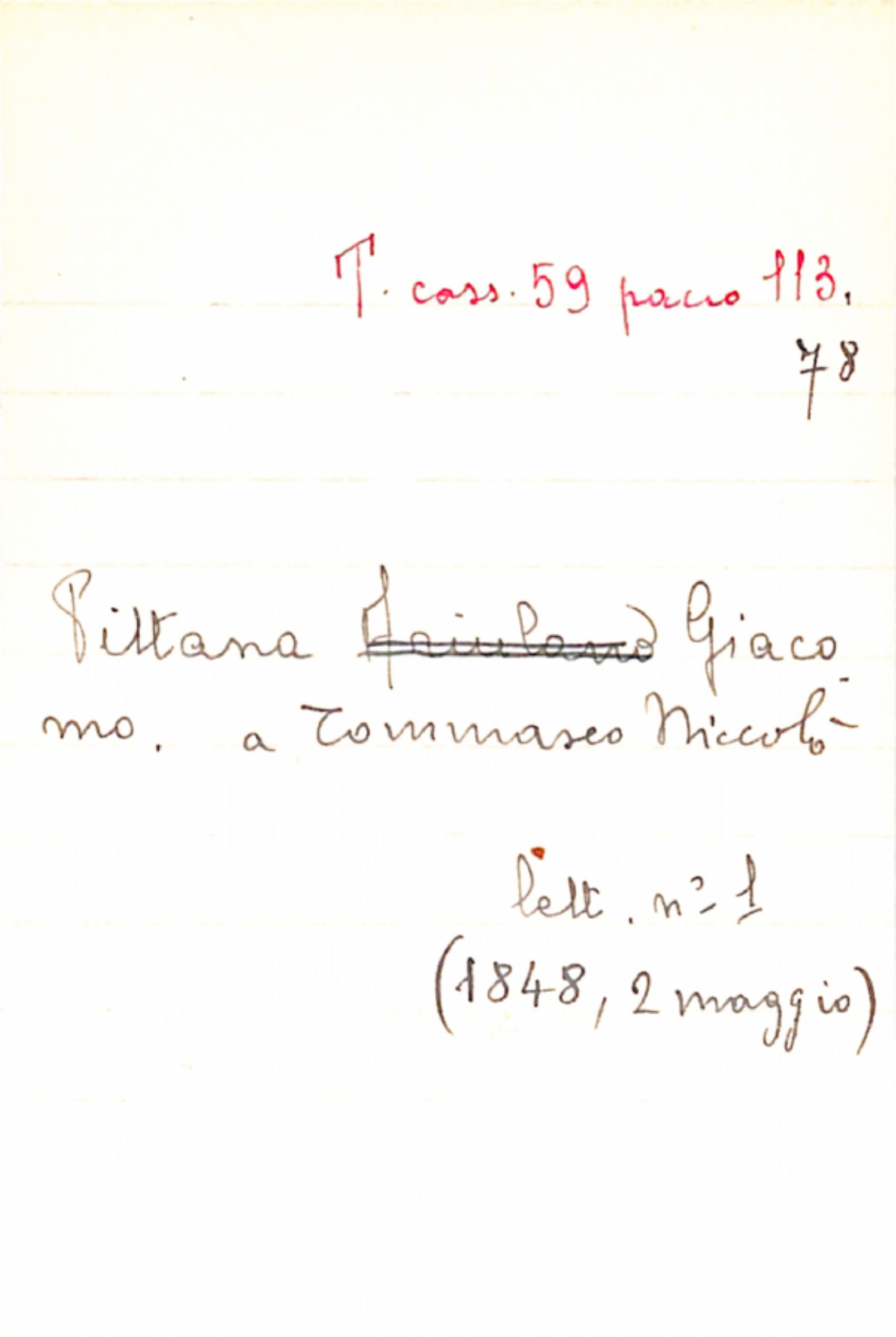 Fascicolo Pittana, Giacomo a Tommaseo, Niccolò