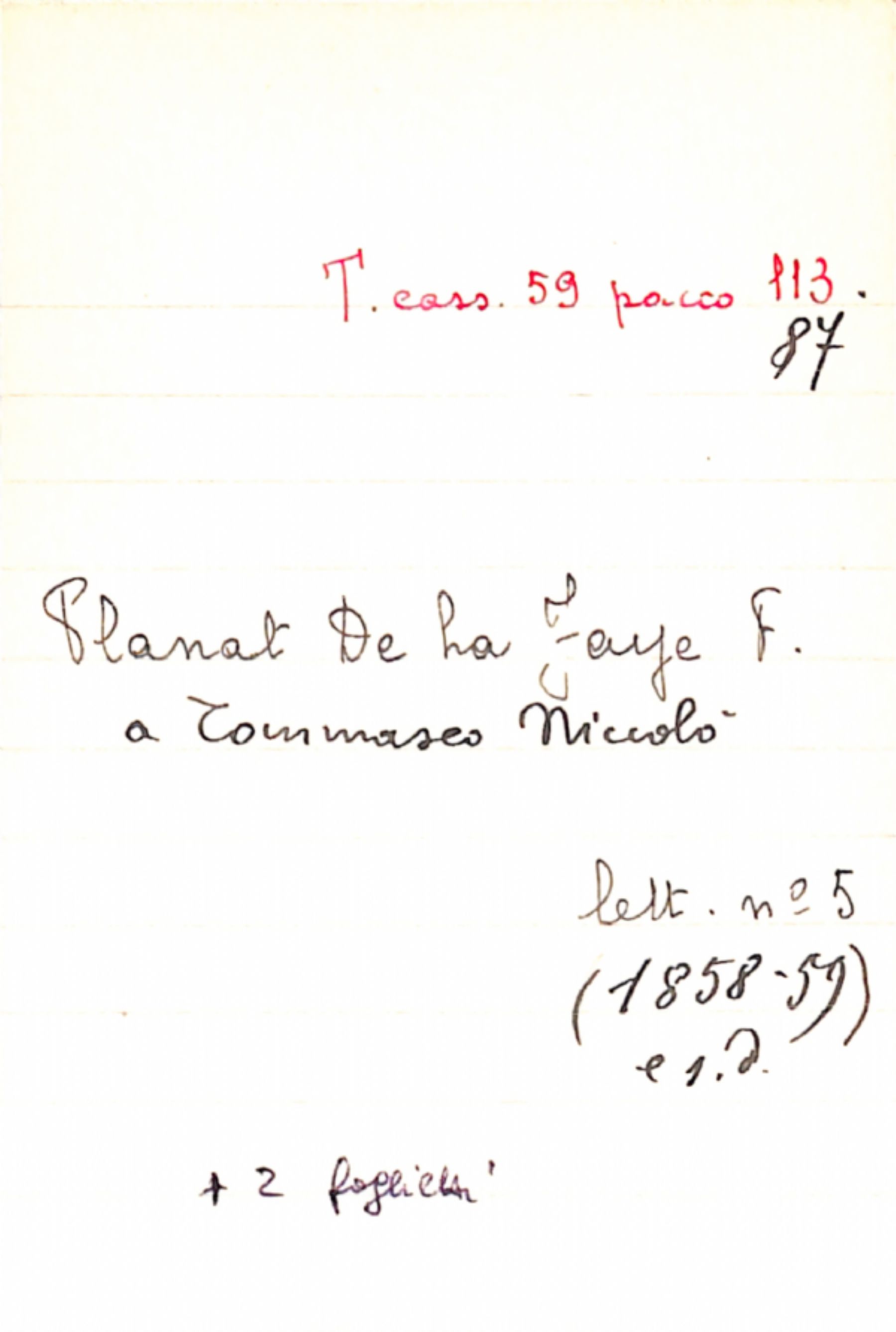 Fascicolo Planat De La Faye, F. a Tommaseo, Niccolò
