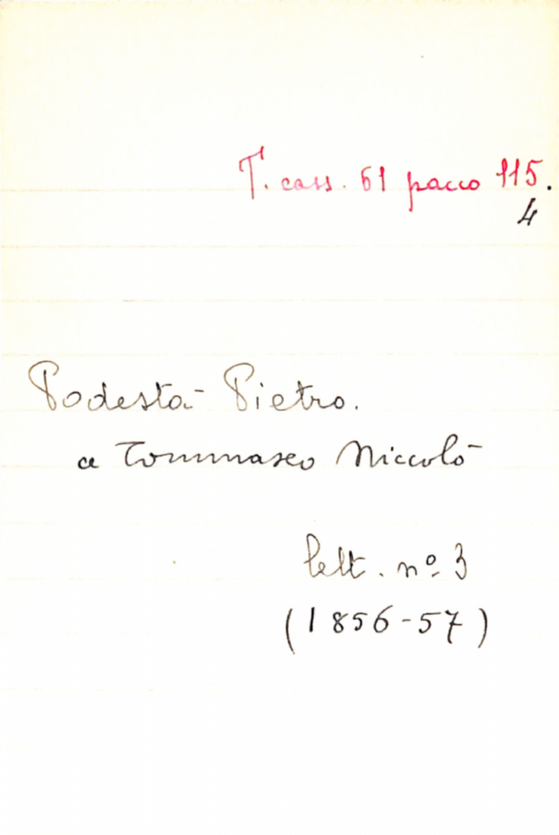 Fascicolo Podestà, Pietro a Tommaseo, Niccolò