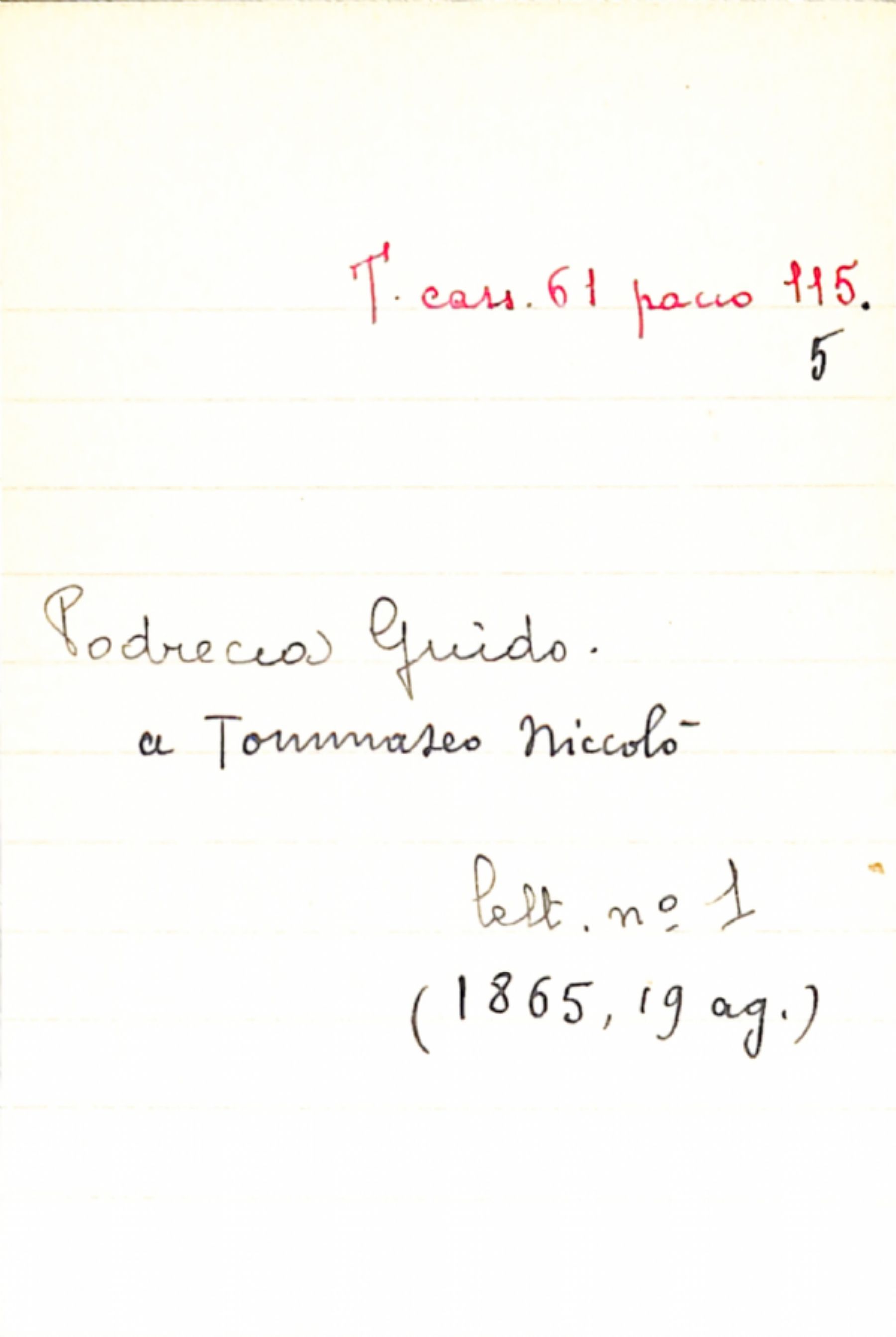 Fascicolo Podrecca, Guido a Tommaseo, Niccolò