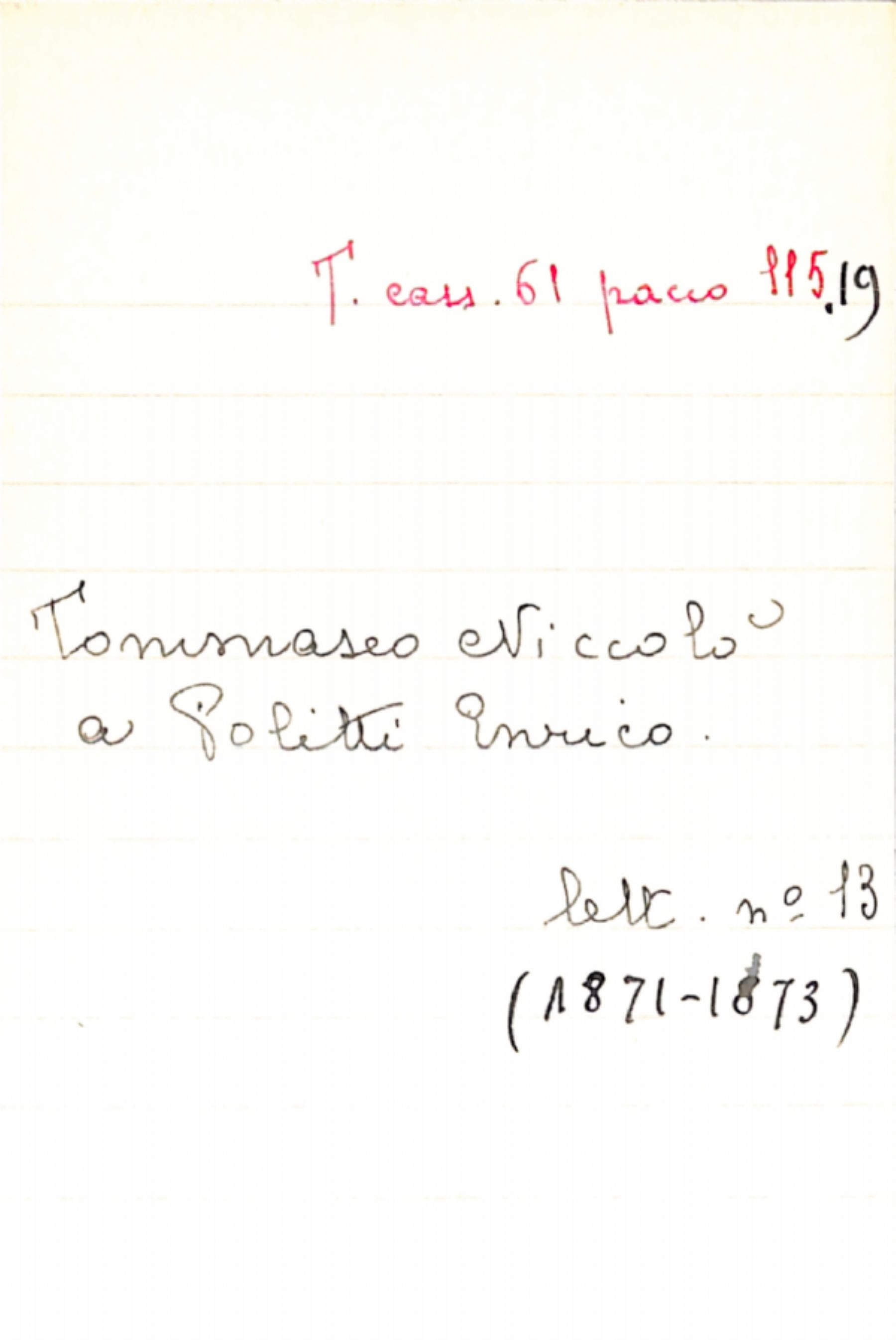 Fascicolo Tommaseo, Niccolò a Politti, Enrico