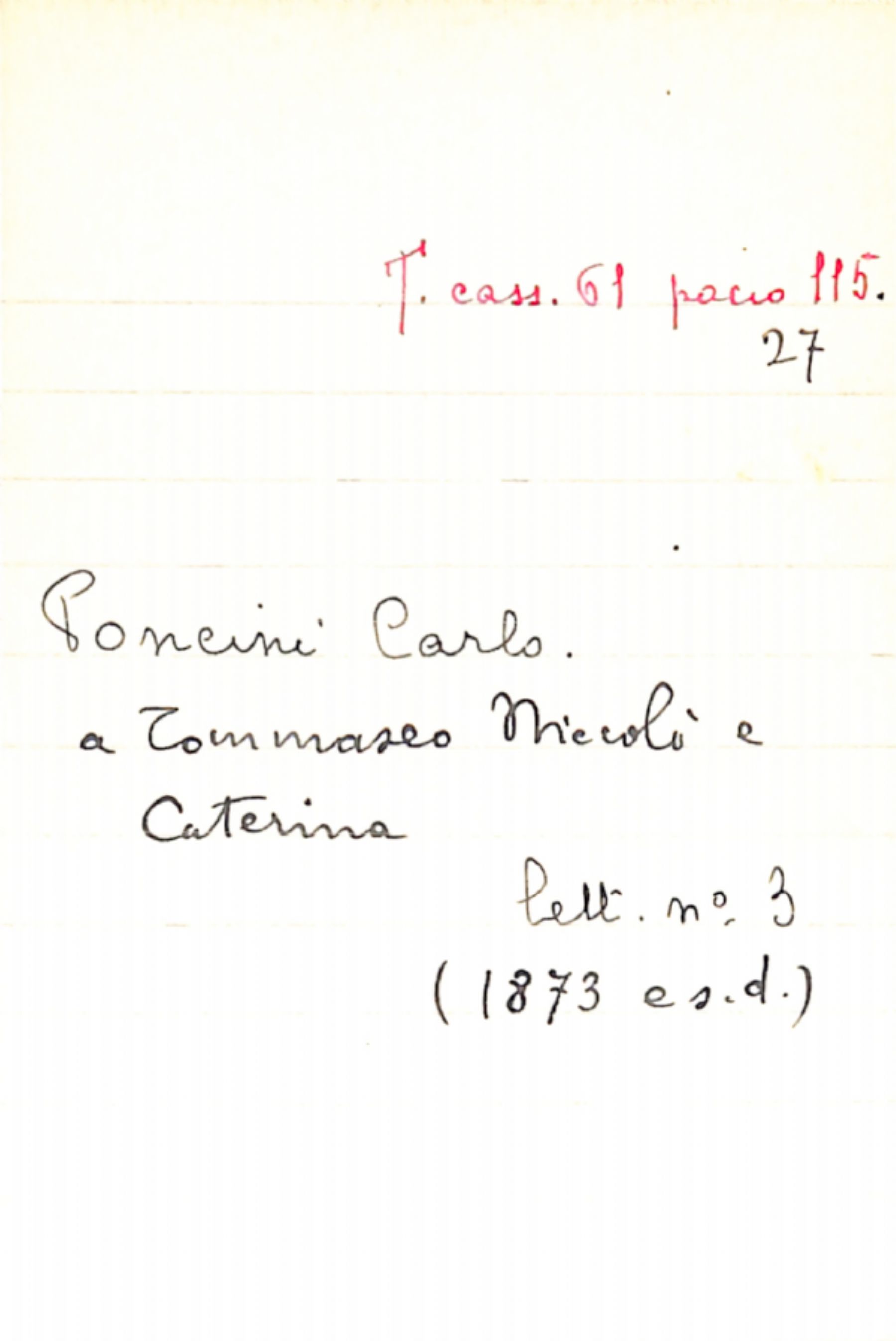 Fascicolo Poncini, Carlo a Tommaseo, Niccolò; Tommaseo, Caterina