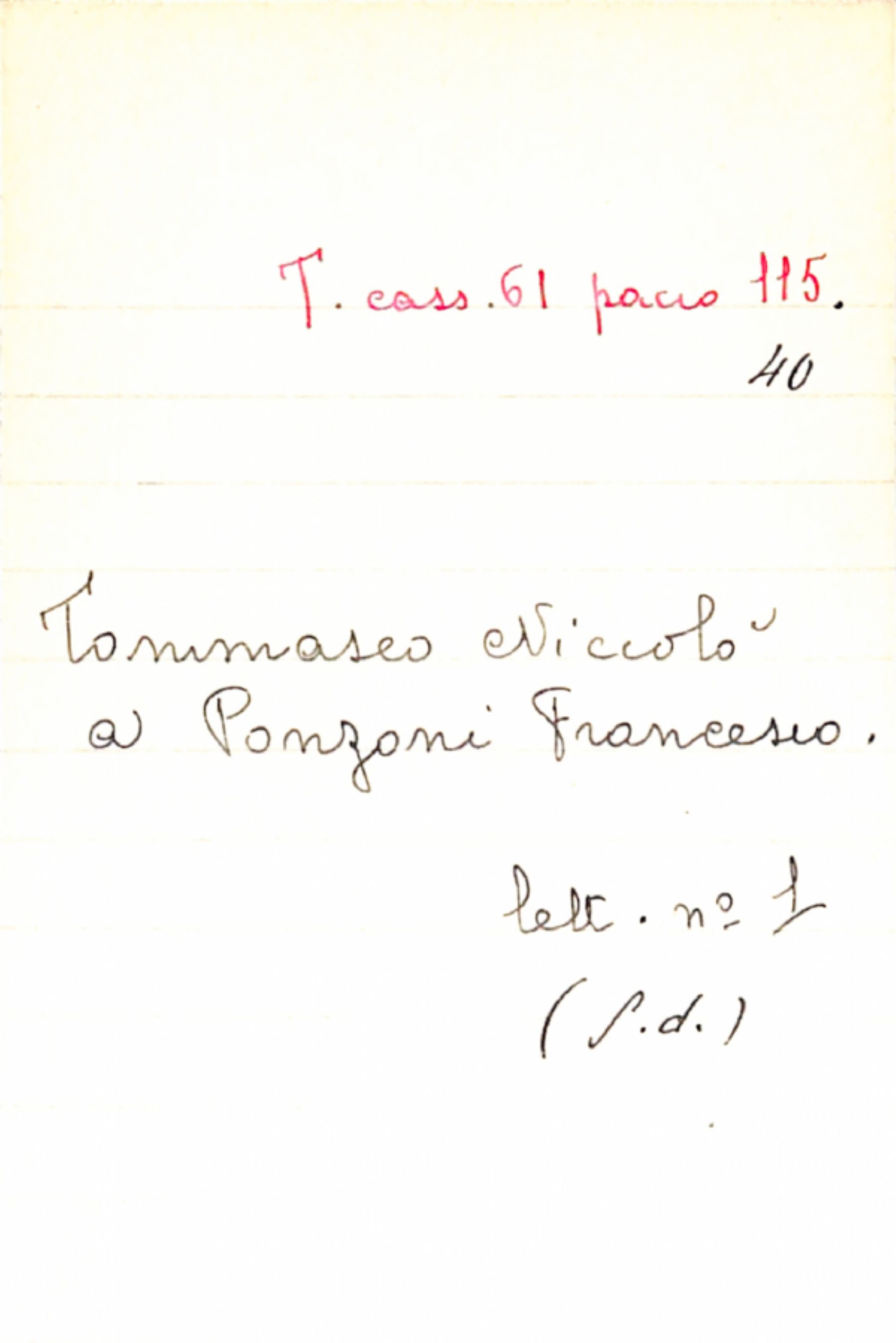 Fascicolo Tommaseo, Niccolò a Ponzoni, Francesco