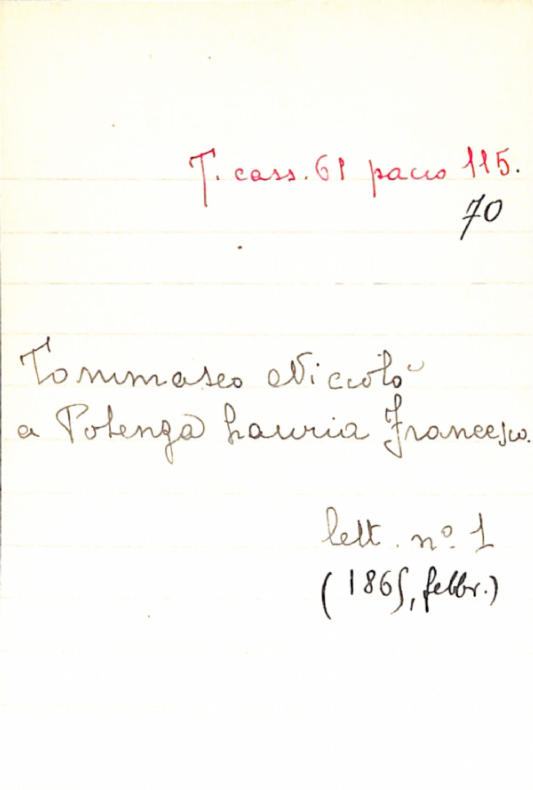 Fascicolo Tommaseo, Niccolò a Potenza Lauria, Francesco