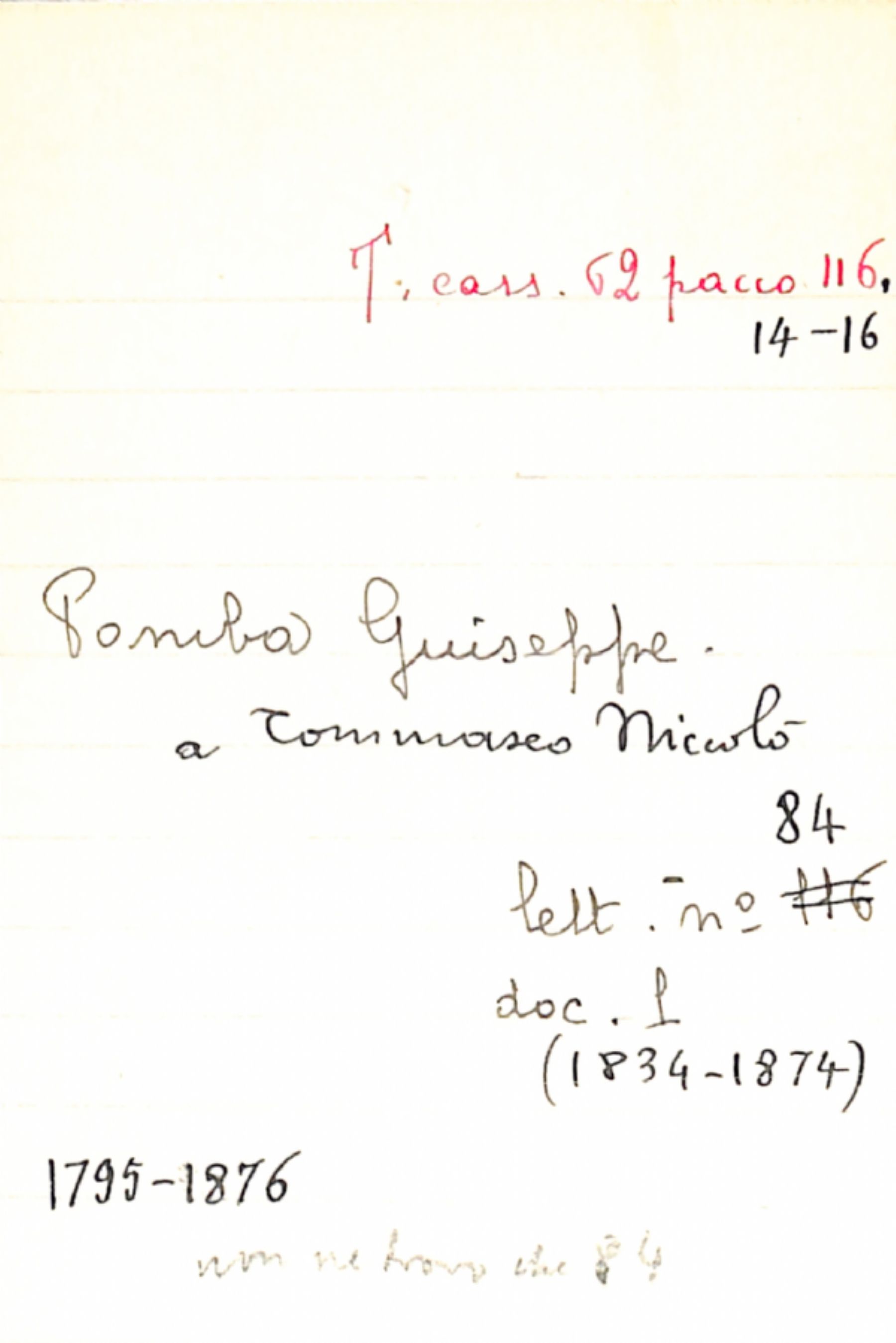 Fascicolo Pomba, Giuseppe a Tommaseo, Niccolò