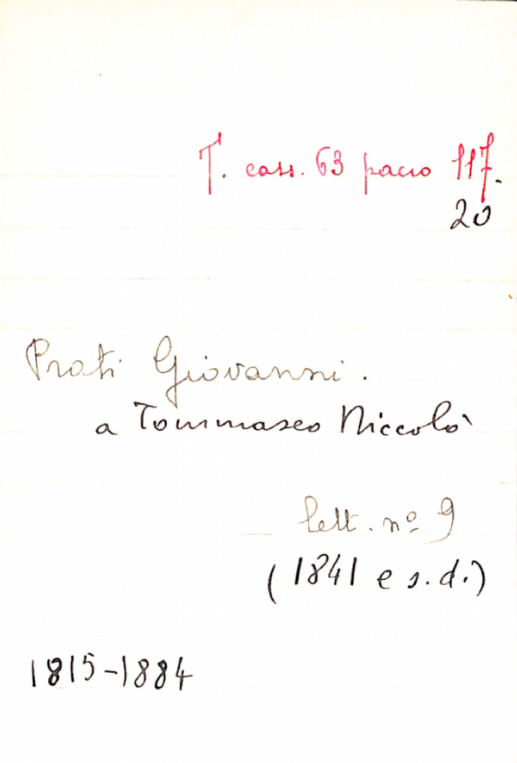 Fascicolo Prati, Giovanni a Tommaseo, Niccolò
