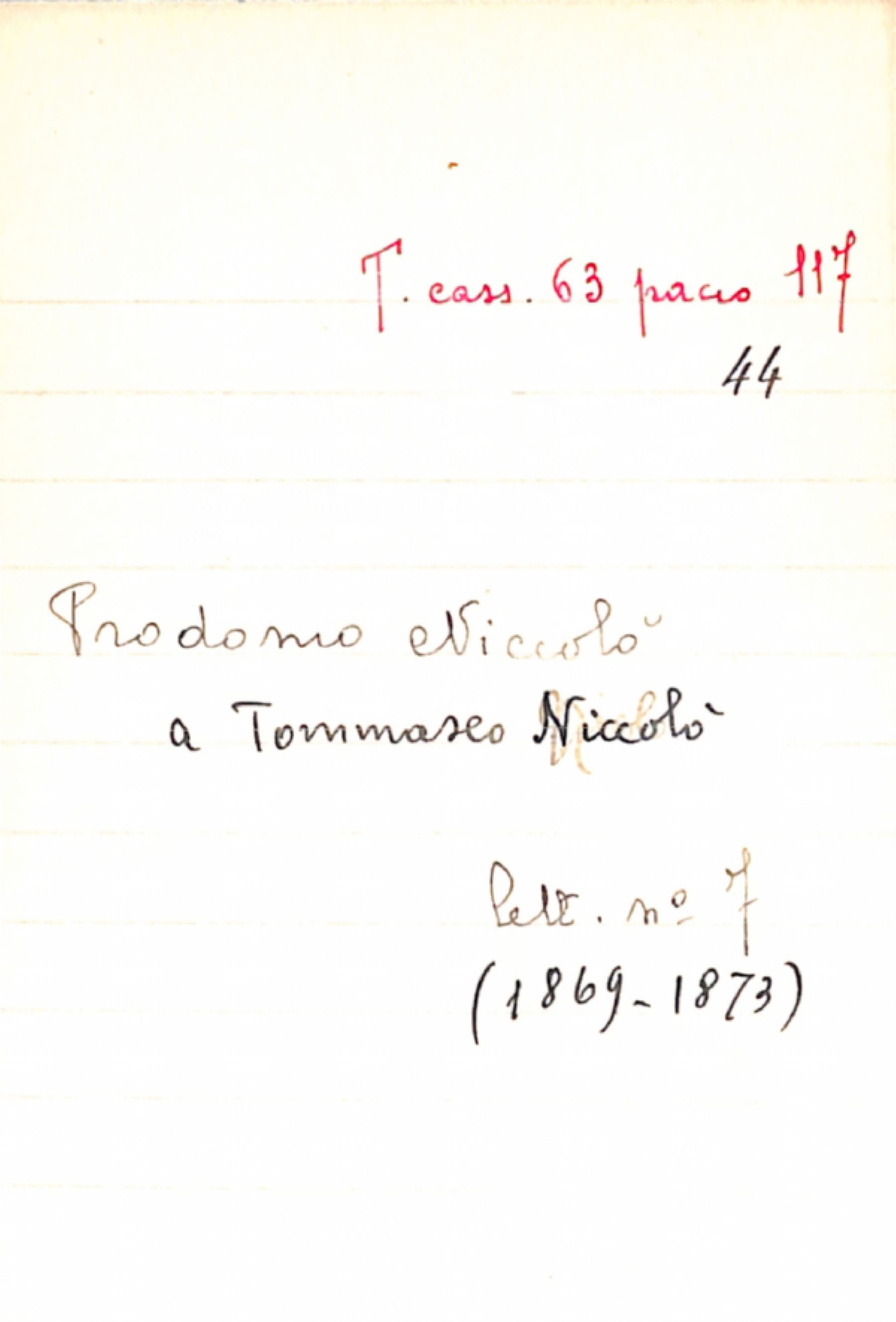 Fascicolo Prodomo, Niccolò a Tommaseo, Niccolò