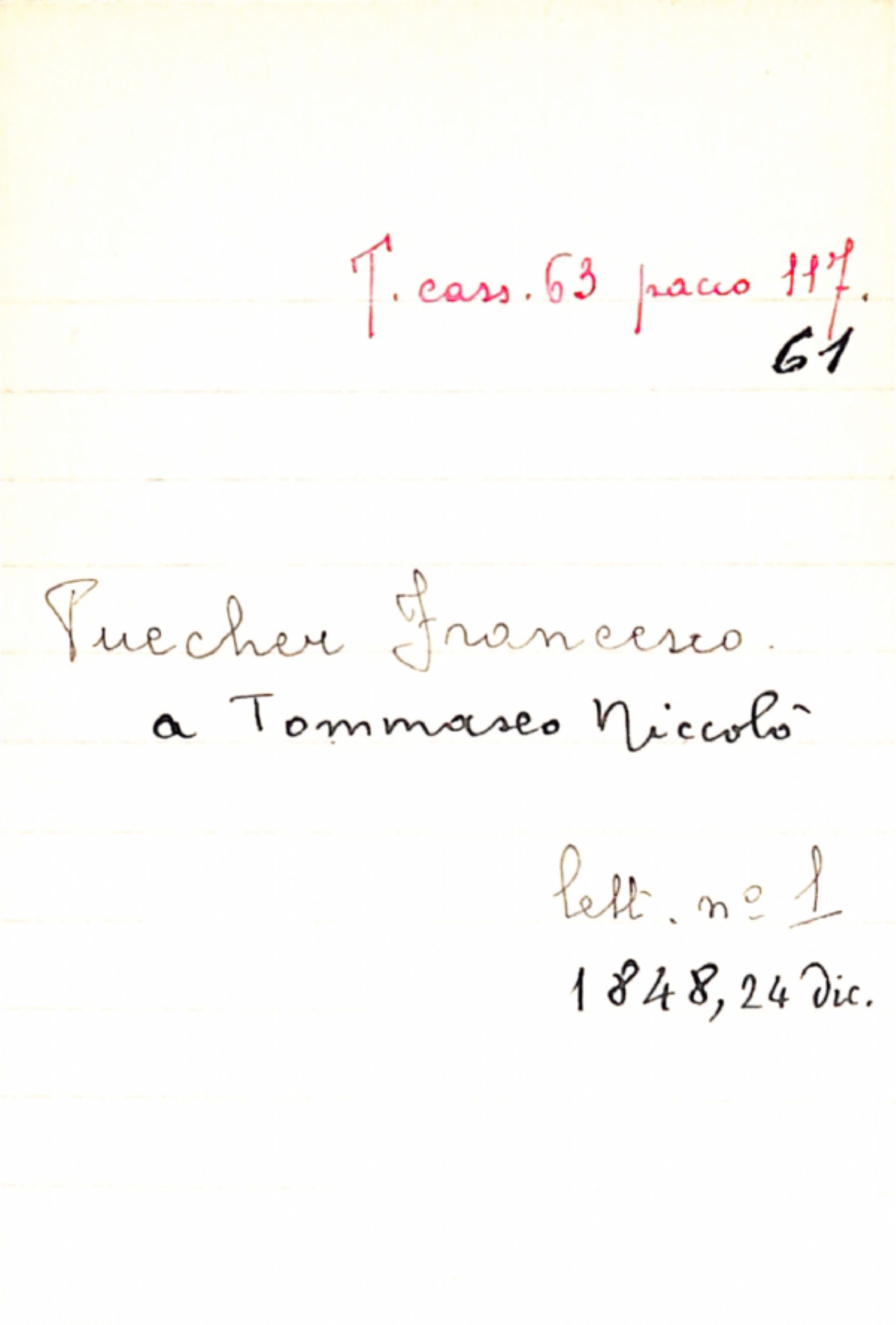 Fascicolo Puecher, Francesco a Tommaseo, Niccolò