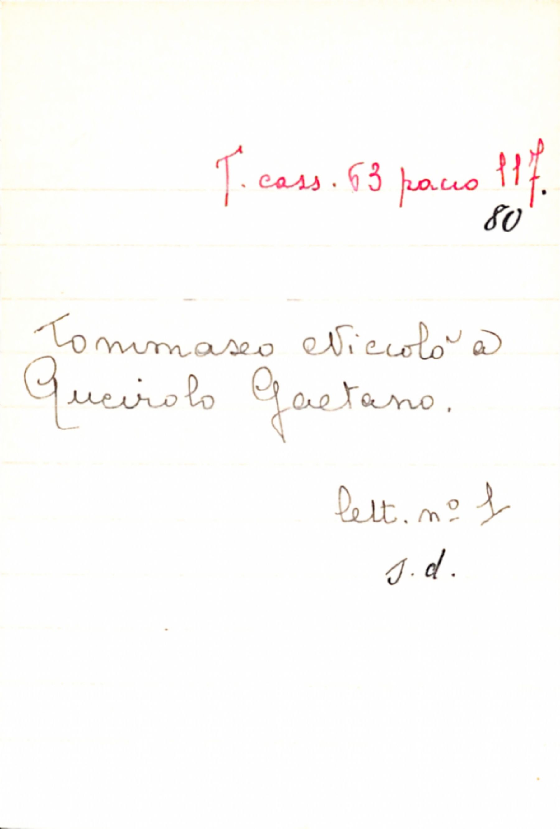 Fascicolo Tommaseo, Niccolò a Queirolo, Gaetano
