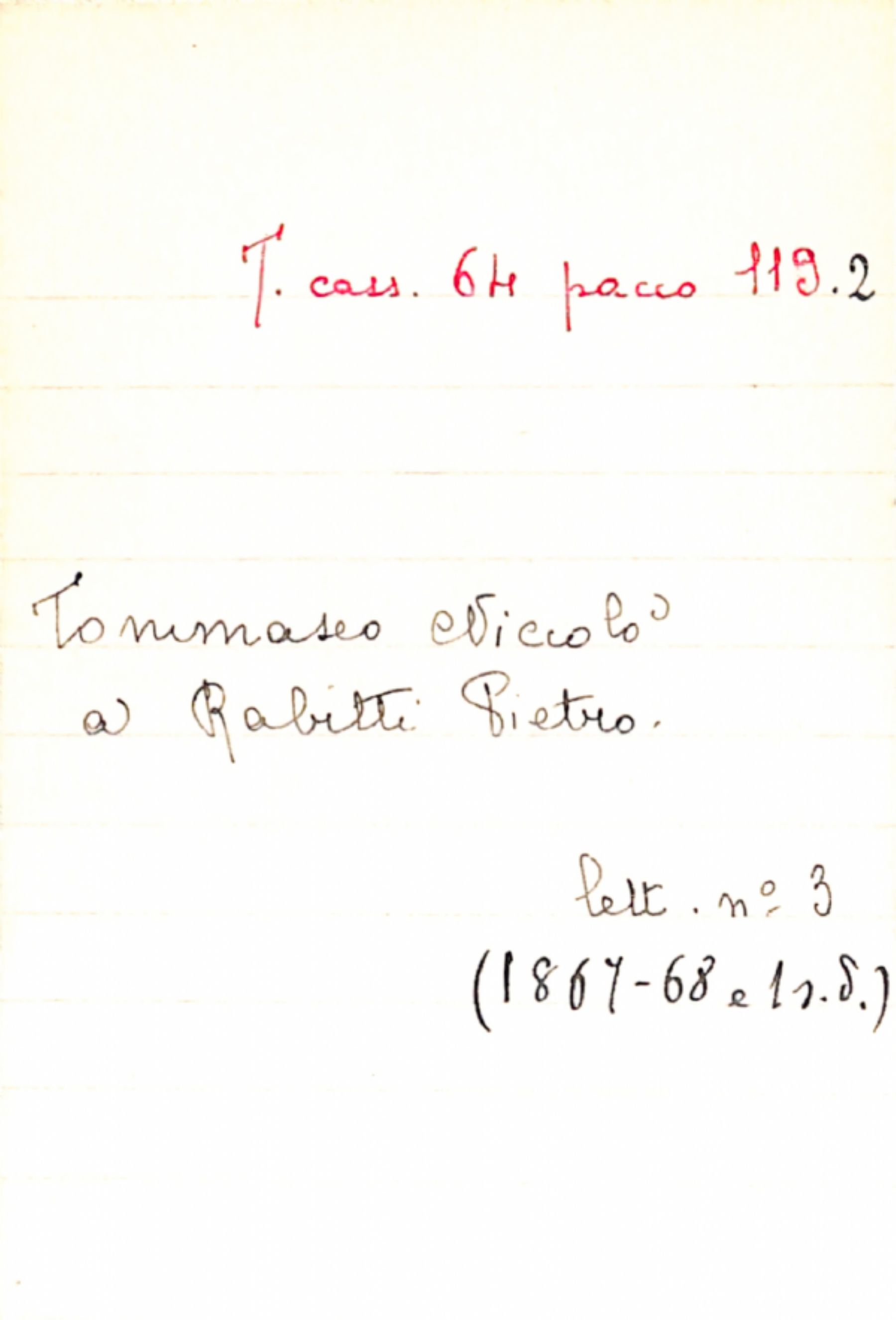 Fascicolo Tommaseo, Niccolò a Rabitti, Pietro