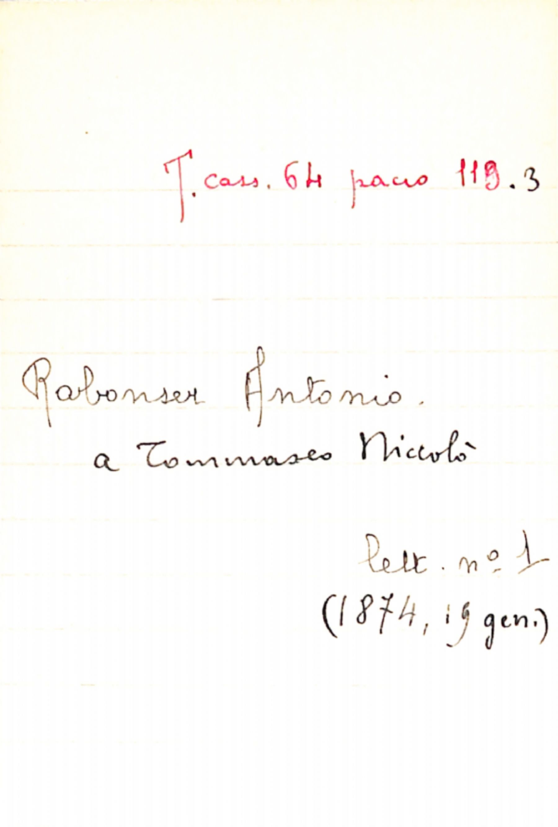 Fascicolo Rabonser, Antonio a Tommaseo, Niccolò