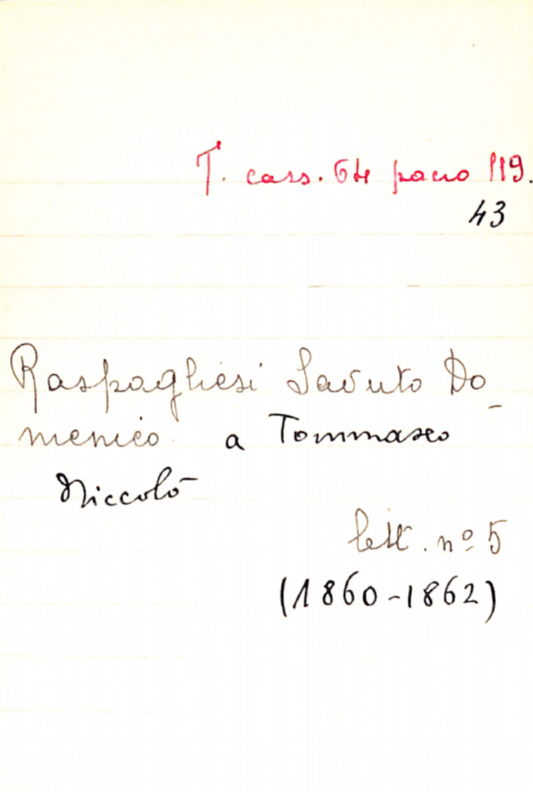 Fascicolo Raspagliesi Savuto, Domenico a Tommaseo, Niccolò
