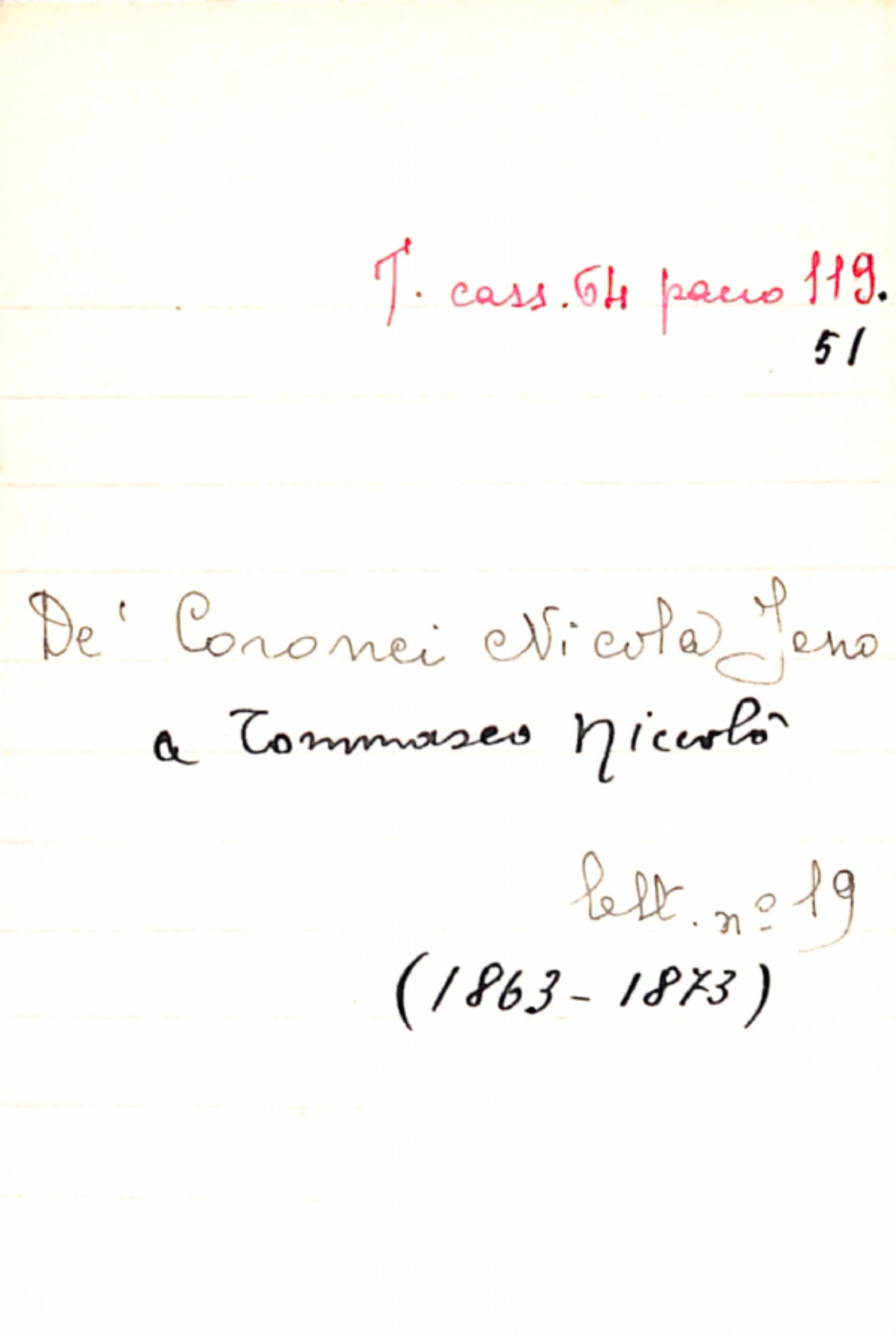 Fascicolo De' Caronei, Nicola Jeno a Tommaseo, Niccolò