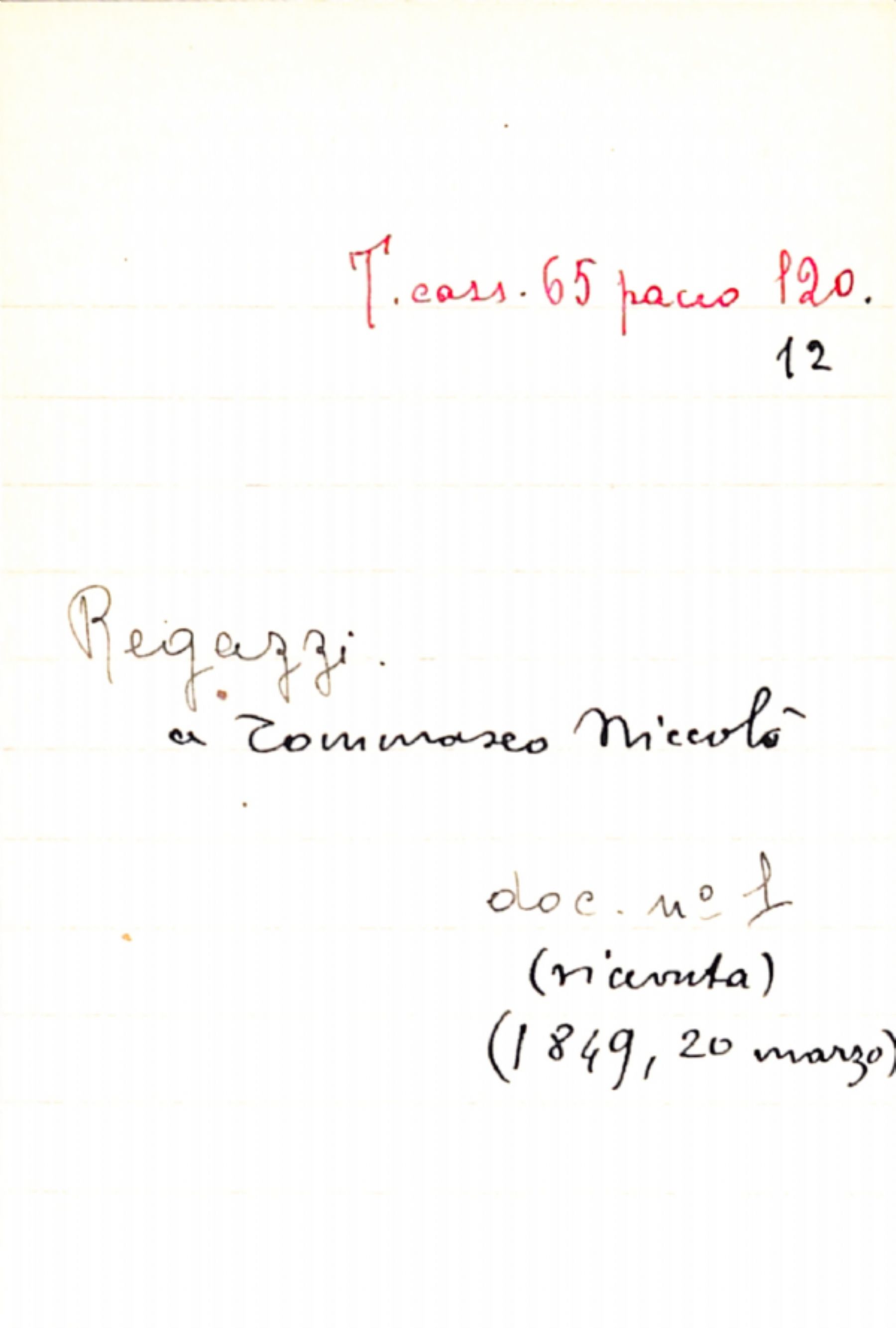 Fascicolo Regazzi a Tommaseo, Niccolò