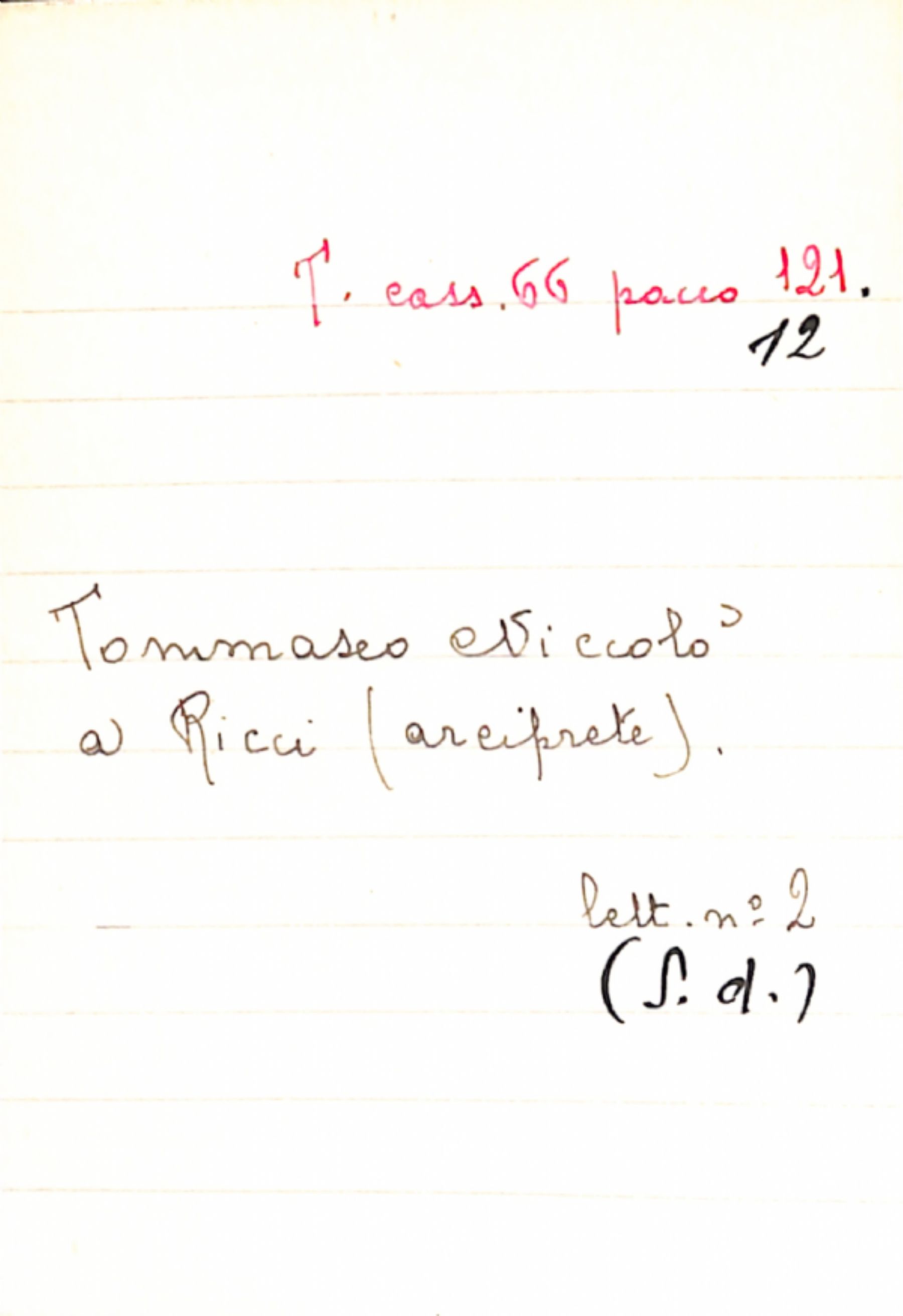 Fascicolo Tommaseo, Niccolò a Ricci, arciprete