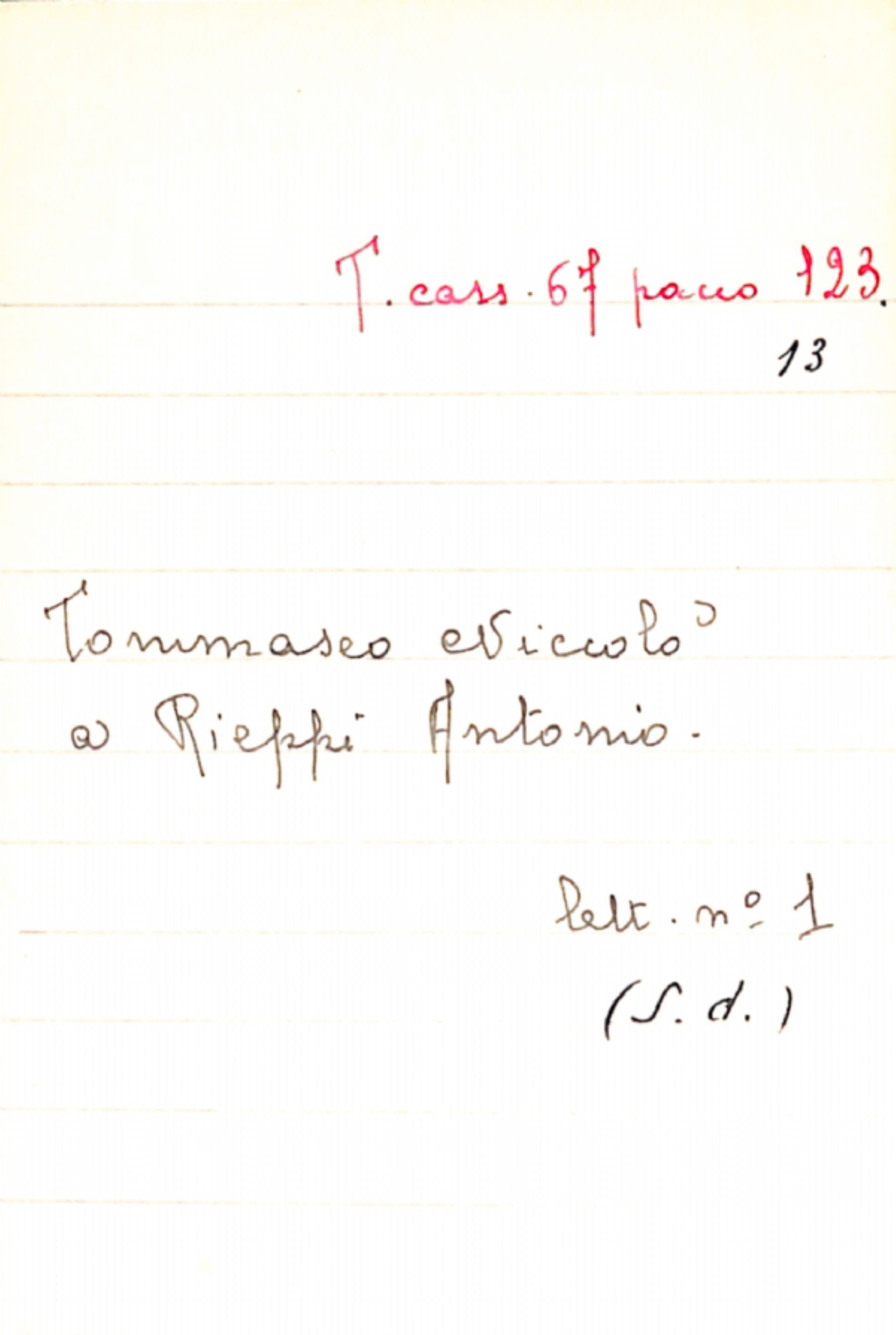 Fascicolo Tommaseo, Niccolò a Rieppi, Antonio