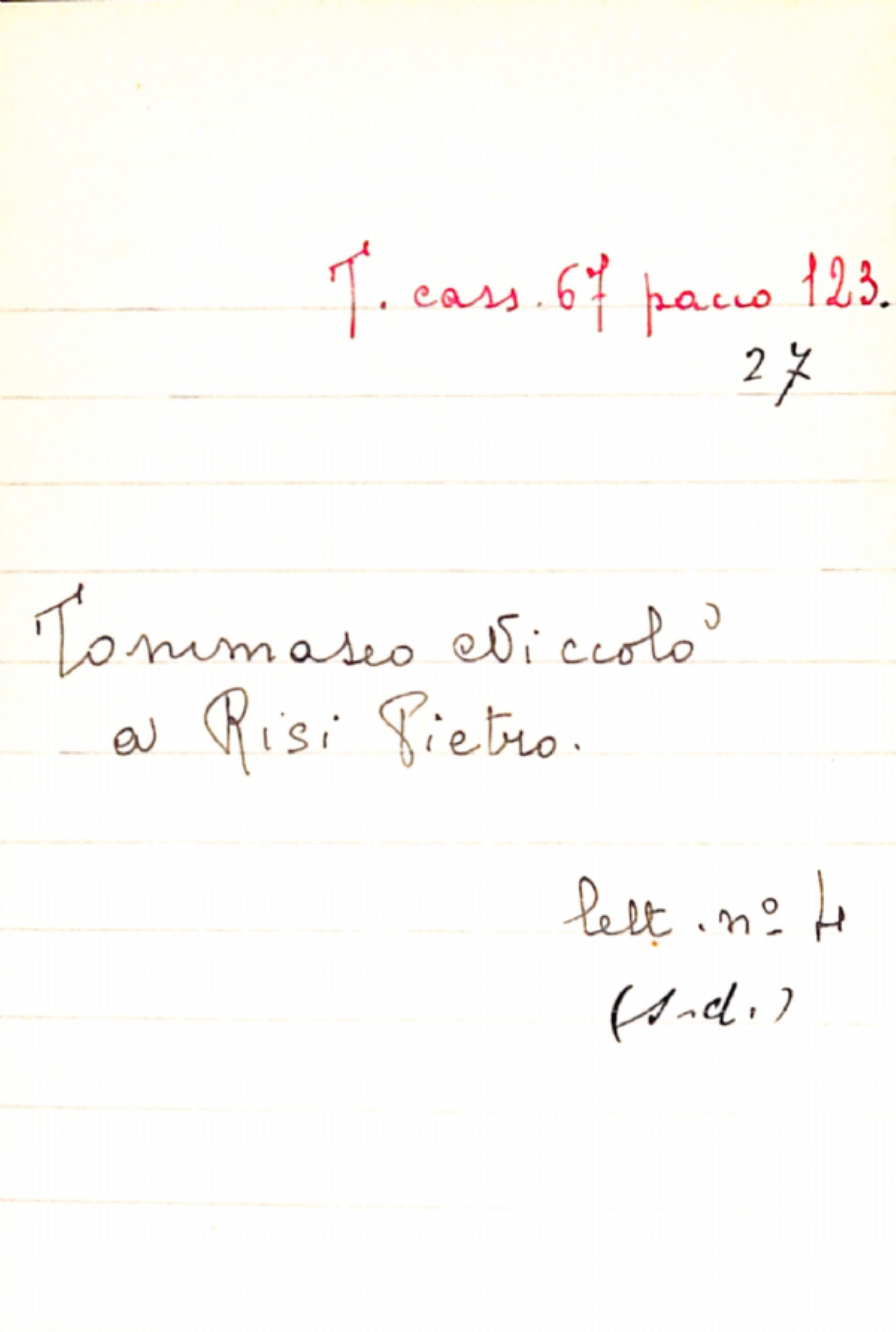 Fascicolo Tommaseo, Niccolò a Risi, Pietro