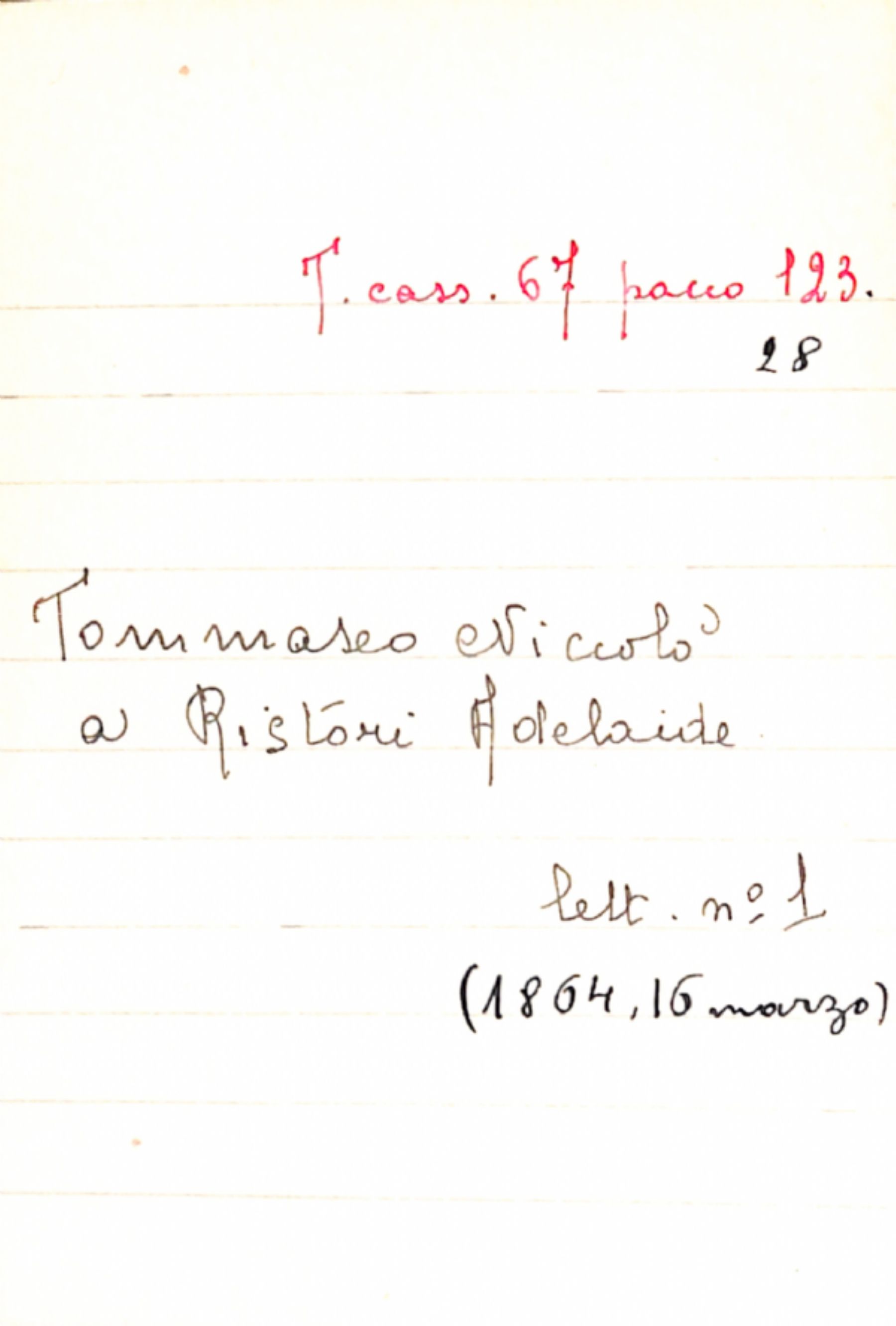 Fascicolo Tommaseo, Niccolò a Ristori, Adelaide