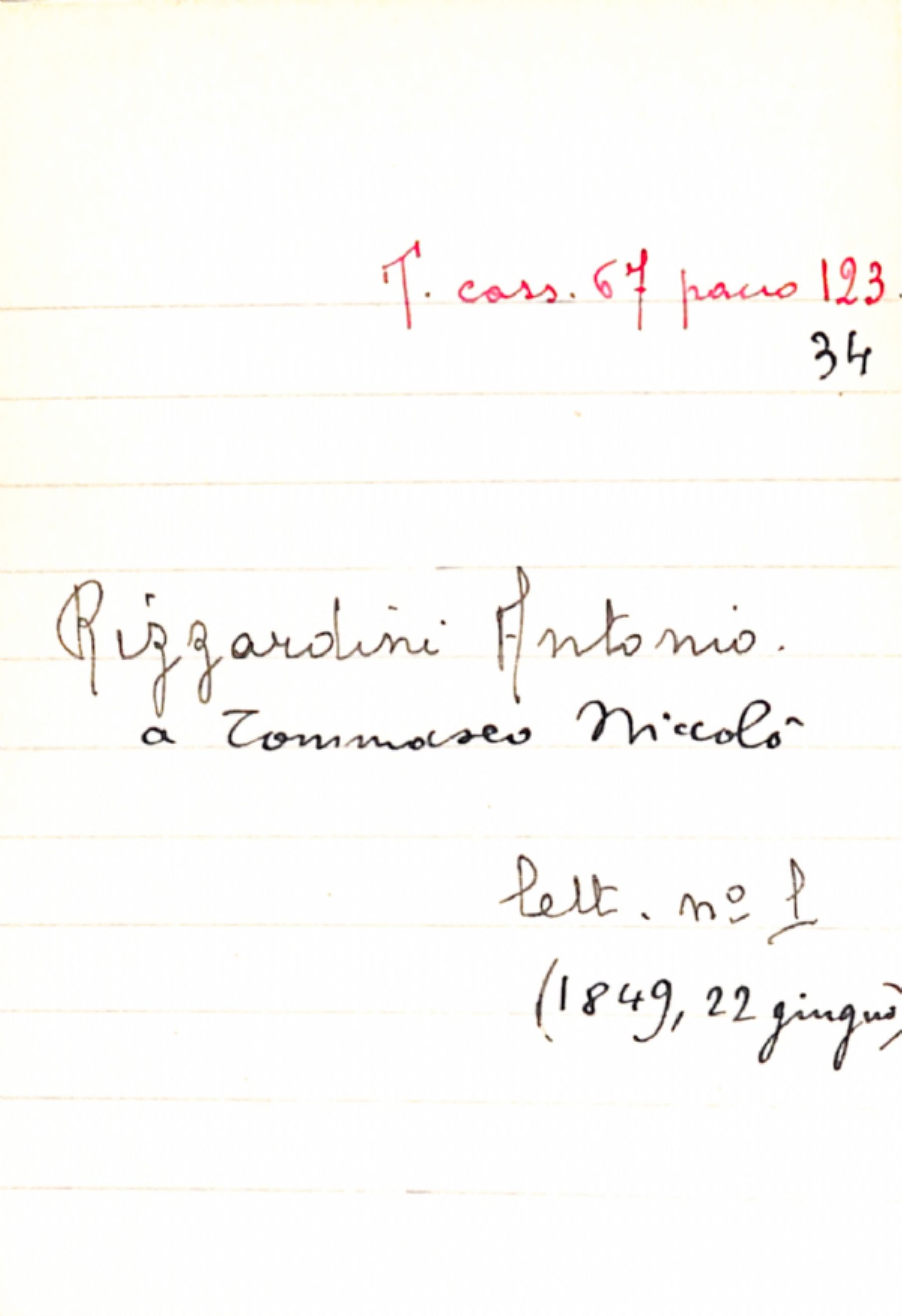 Fascicolo Rizzardini, Antonio a Tommaseo, Niccolò