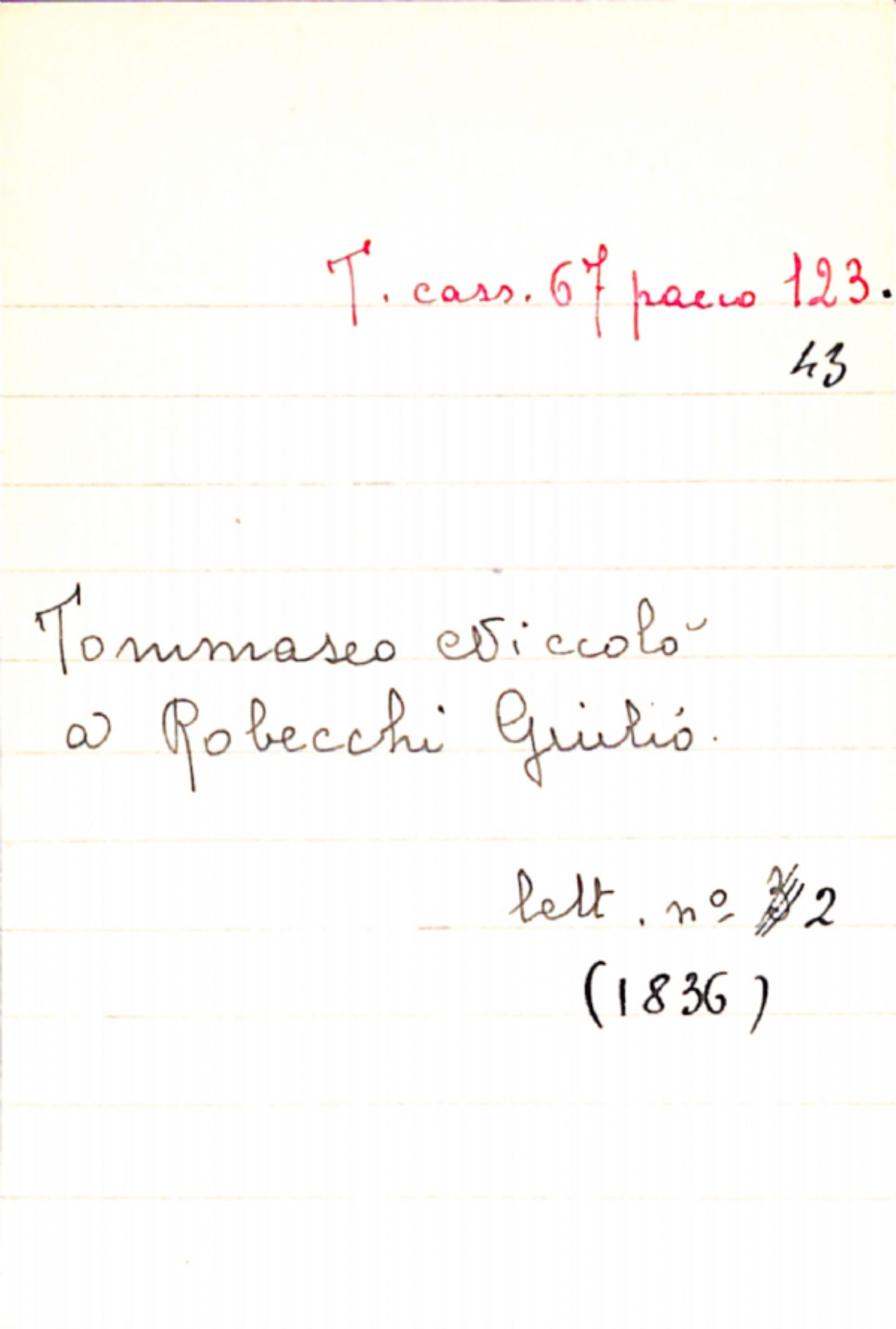 Fascicolo Tommaseo, Niccolò a Robecchi, Giulio