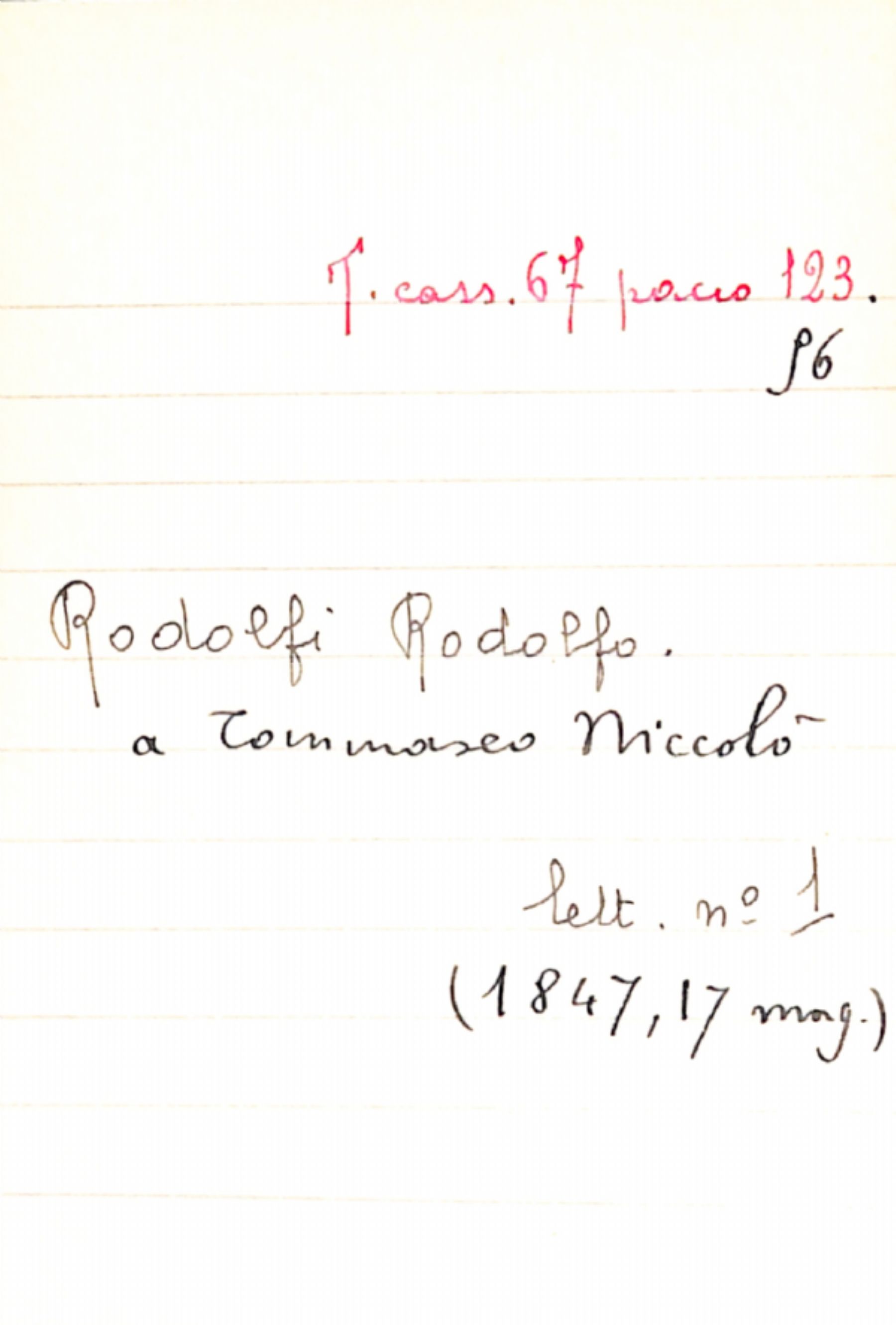 Fascicolo Rodolfi, Rodolfo a Tommaseo, Niccolò