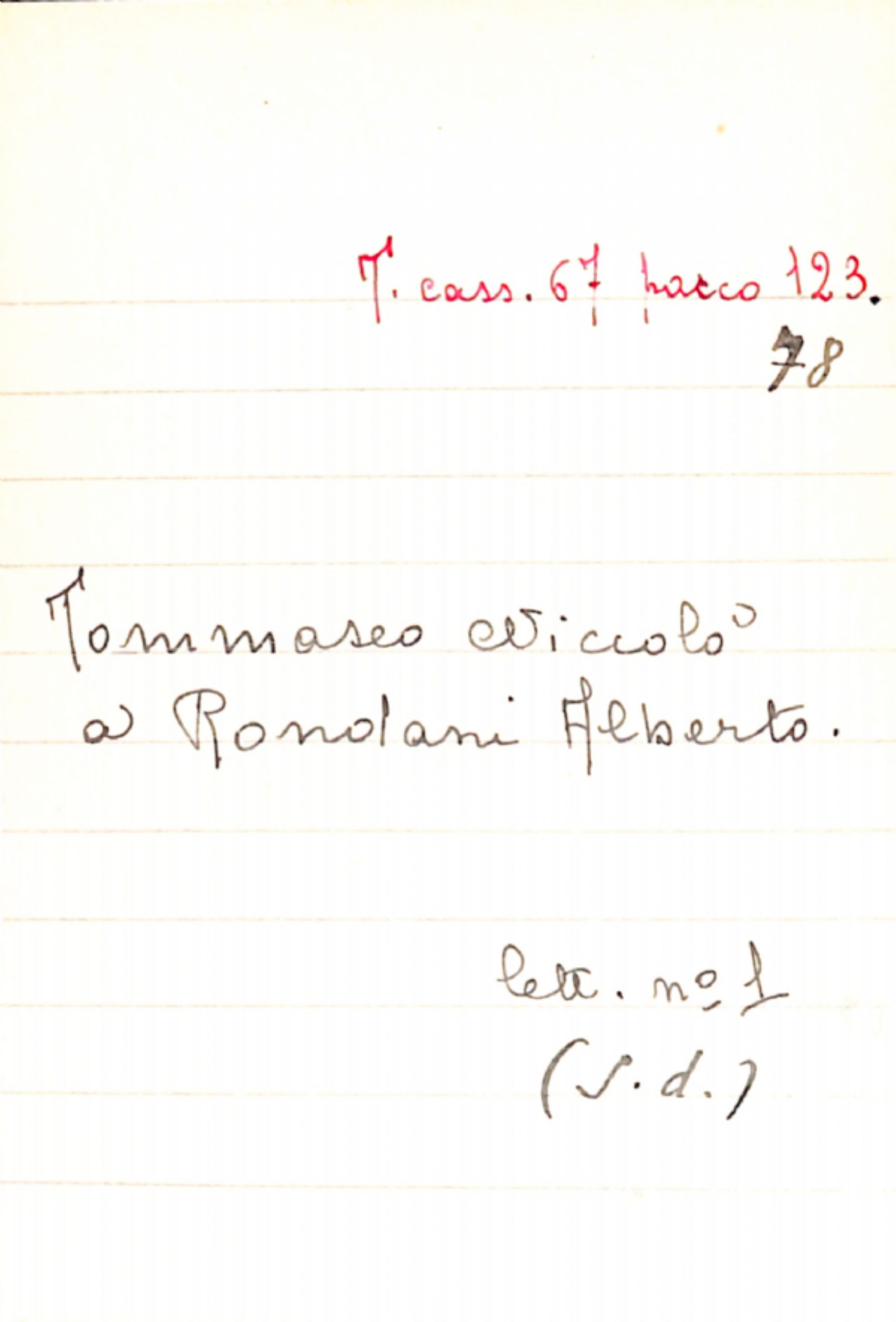 Fascicolo Tommaseo, Niccolò a Rondani, Alberto