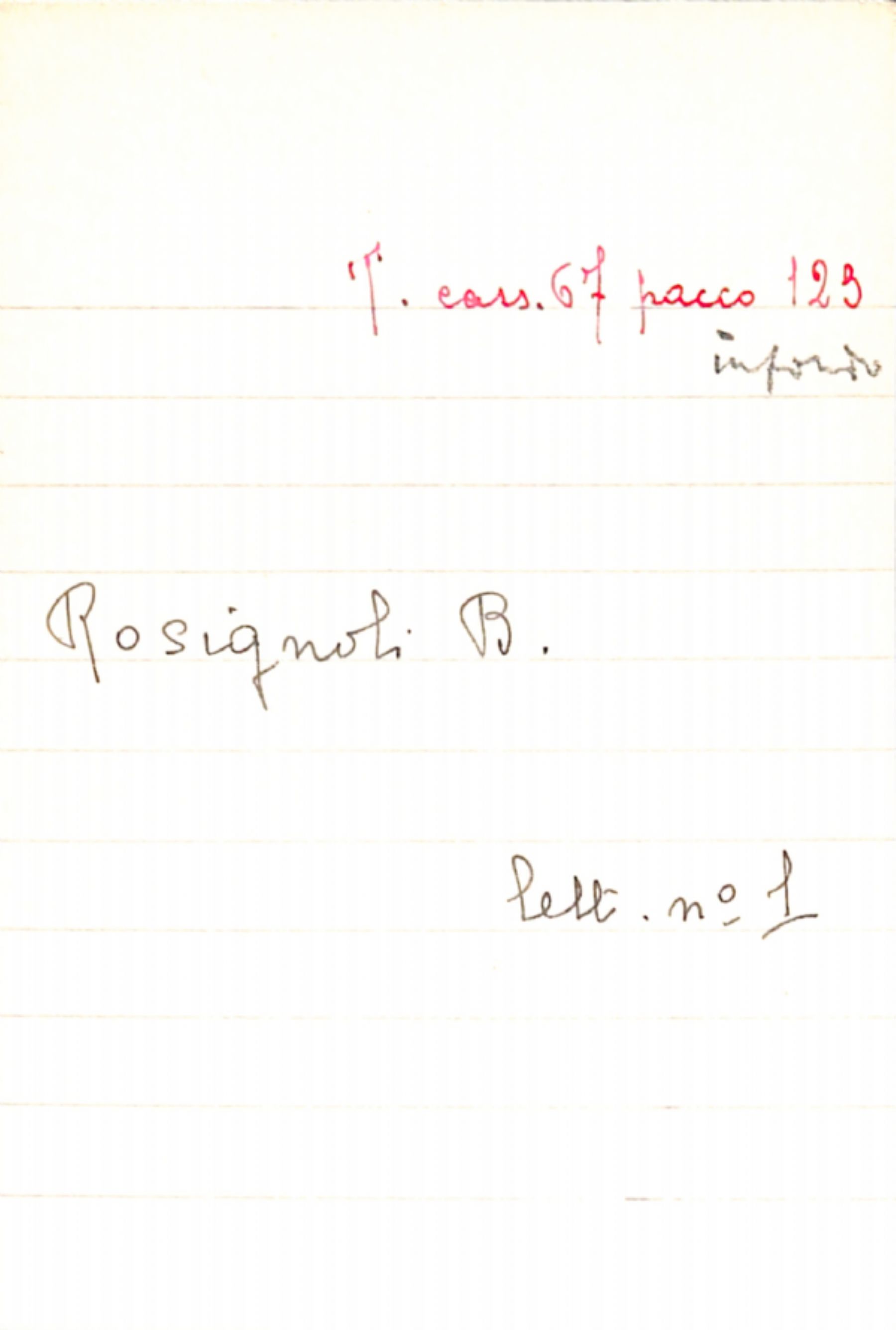 Fascicolo Rosignoli, B. a [senza destinatario]