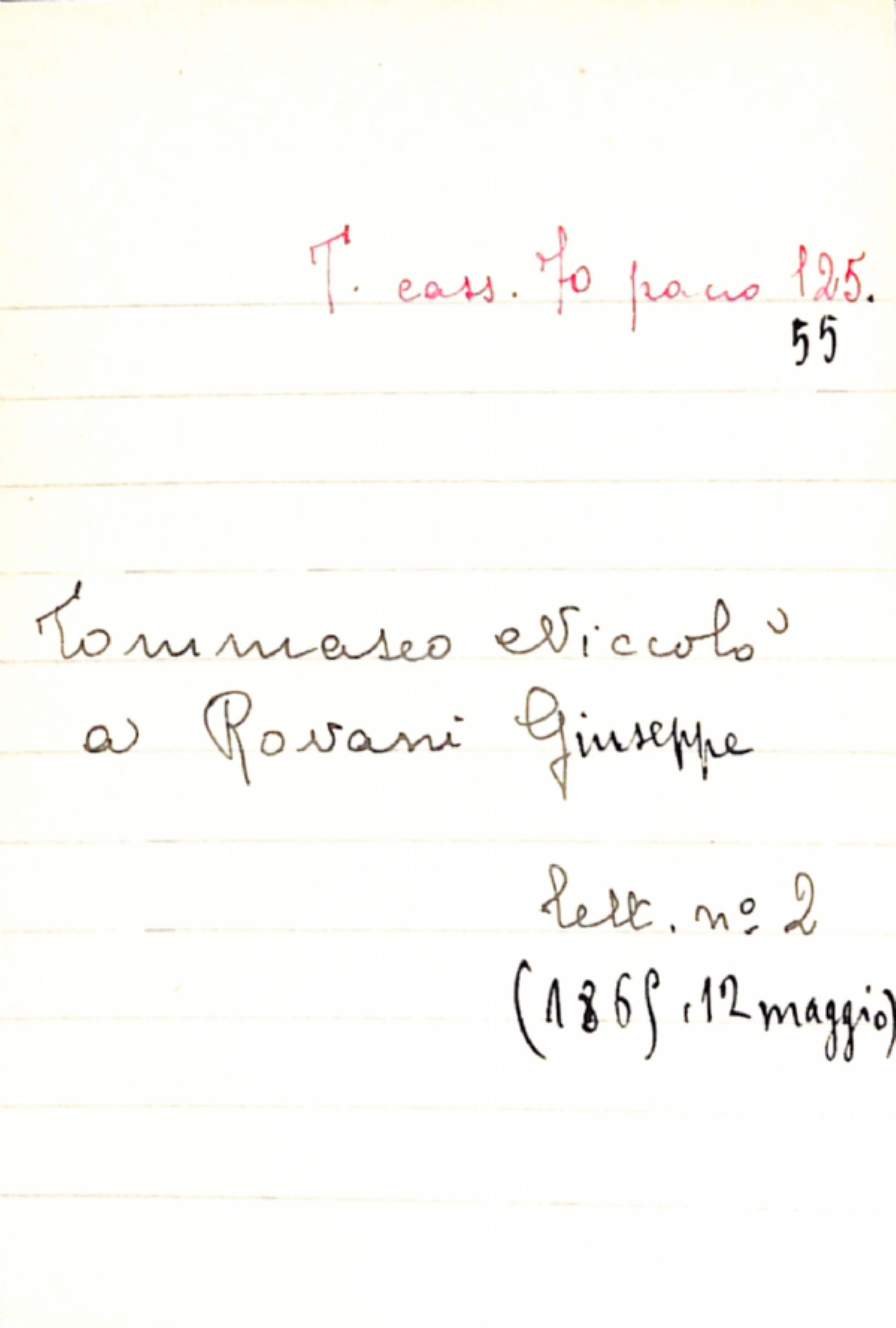 Fascicolo Tommaseo, Niccolò a Rovani, Giuseppe