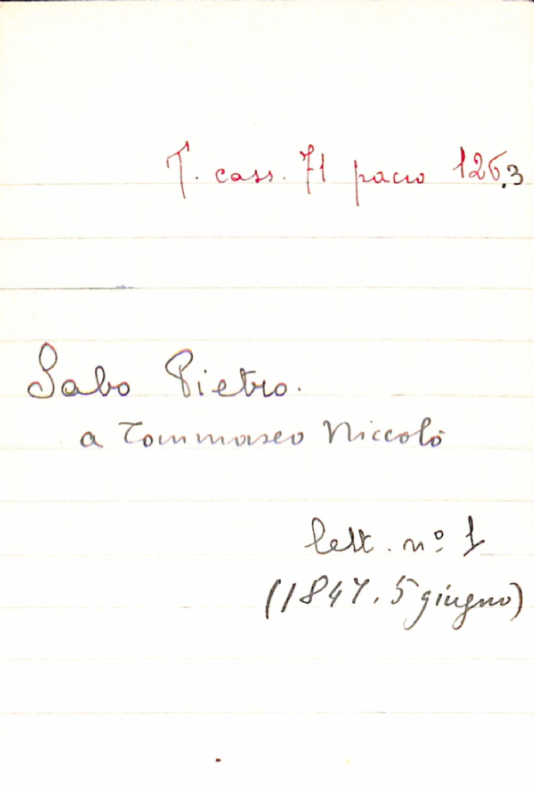 Fascicolo Sabo, Pietro a Tommaseo, Niccolò