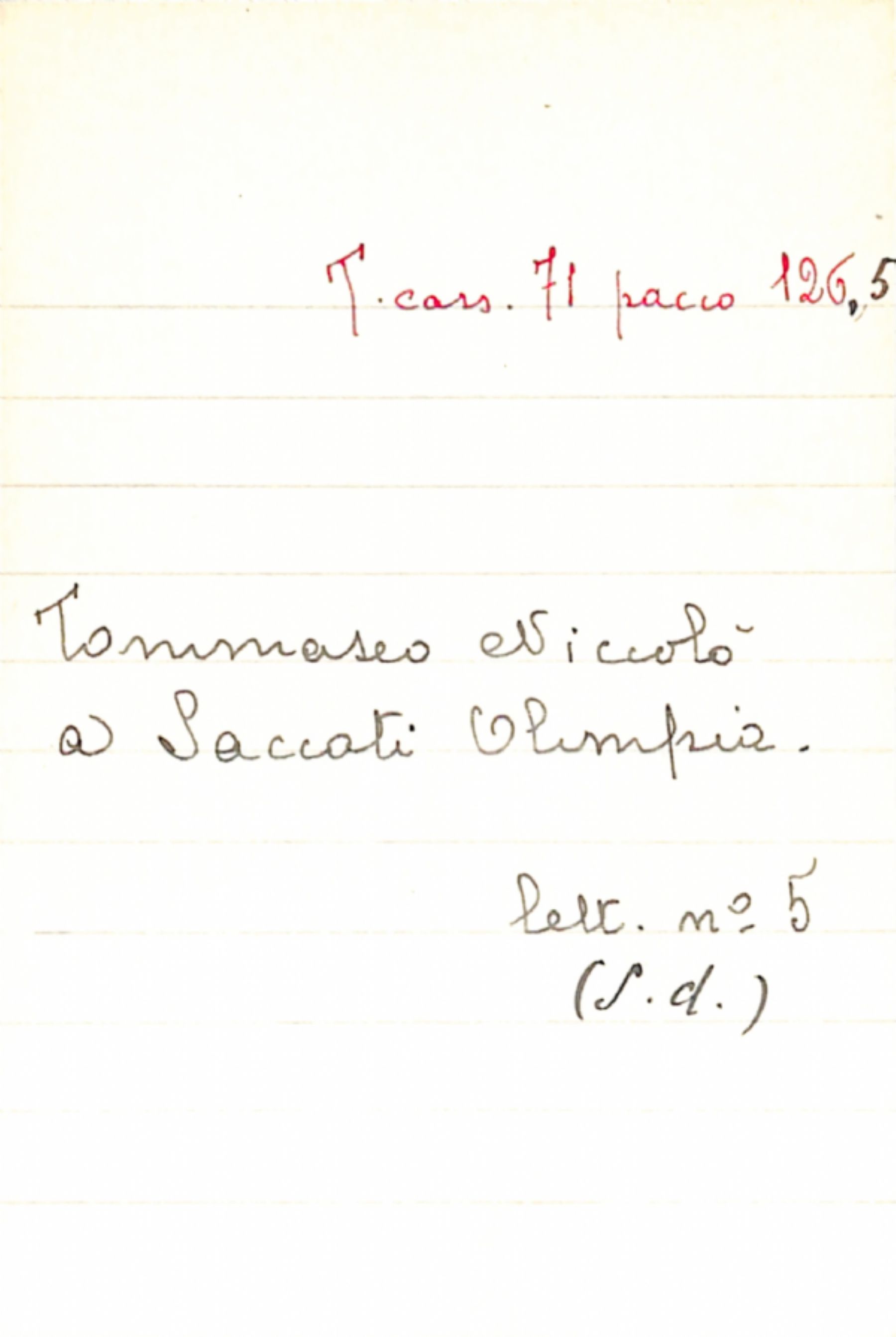 Fascicolo Tommaseo, Niccolò a Saccati, Olimpia