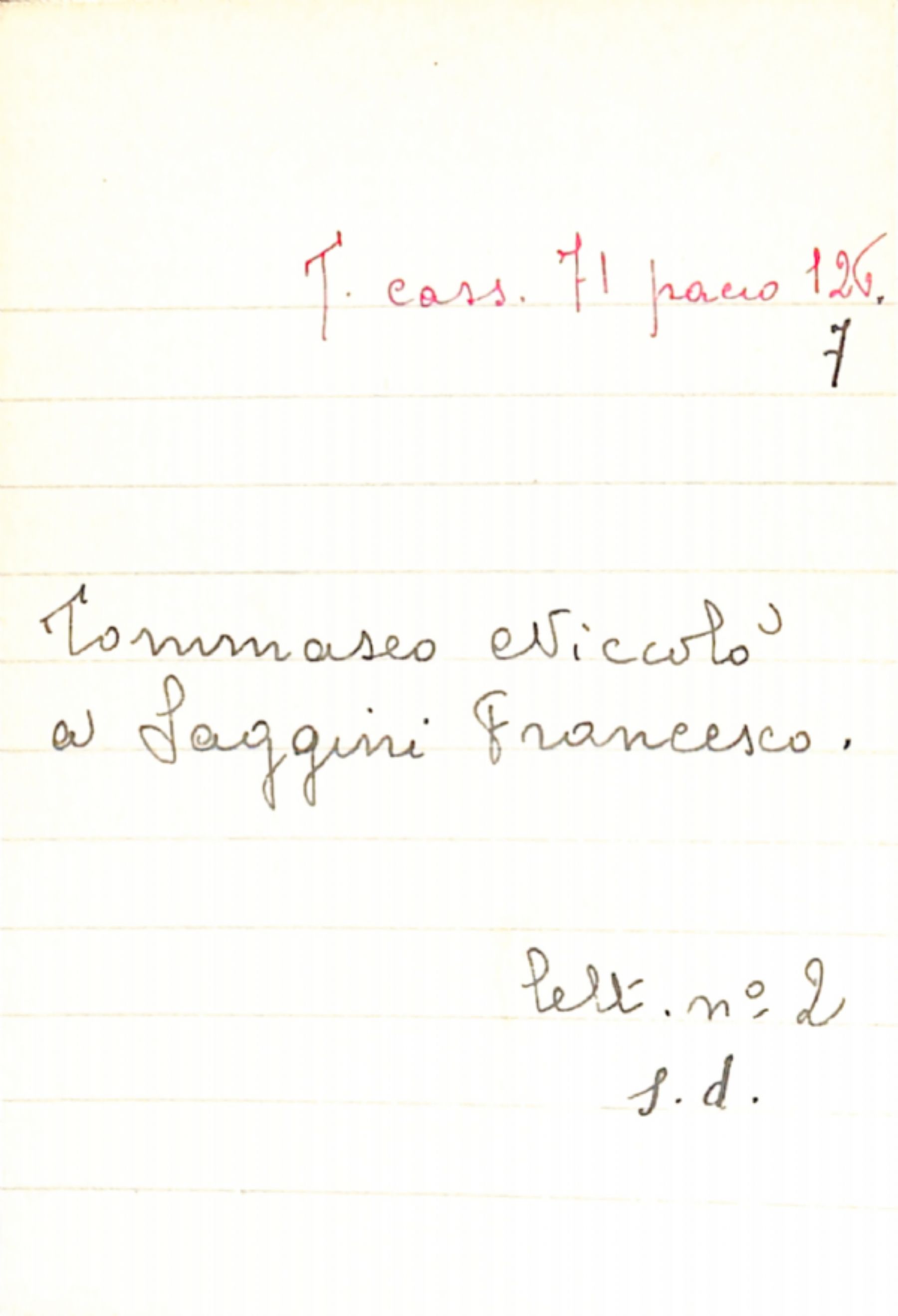 Fascicolo Tommaseo, Niccolò a Saggini, Francesco