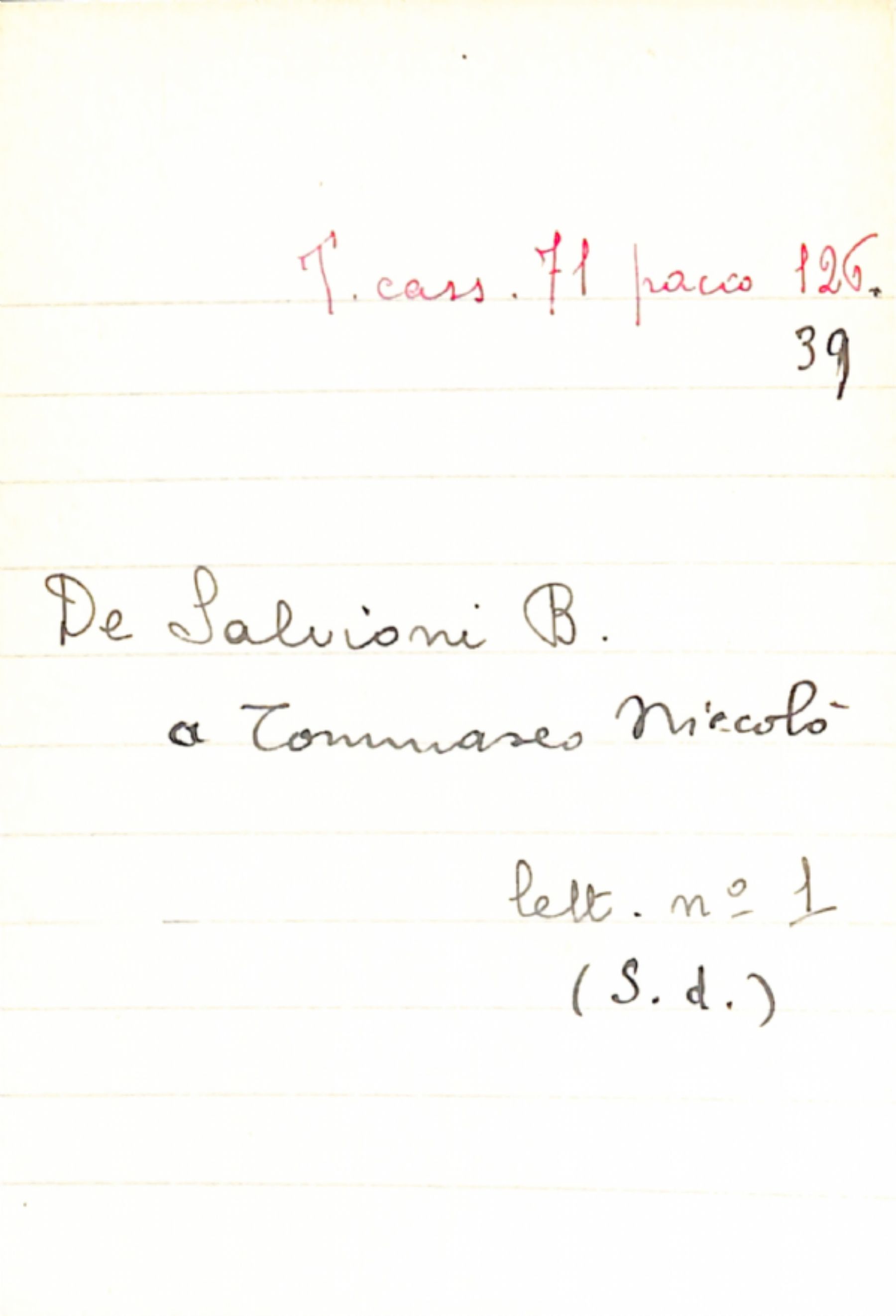 Fascicolo De Salvioni, B. a Tommaseo, Niccolò