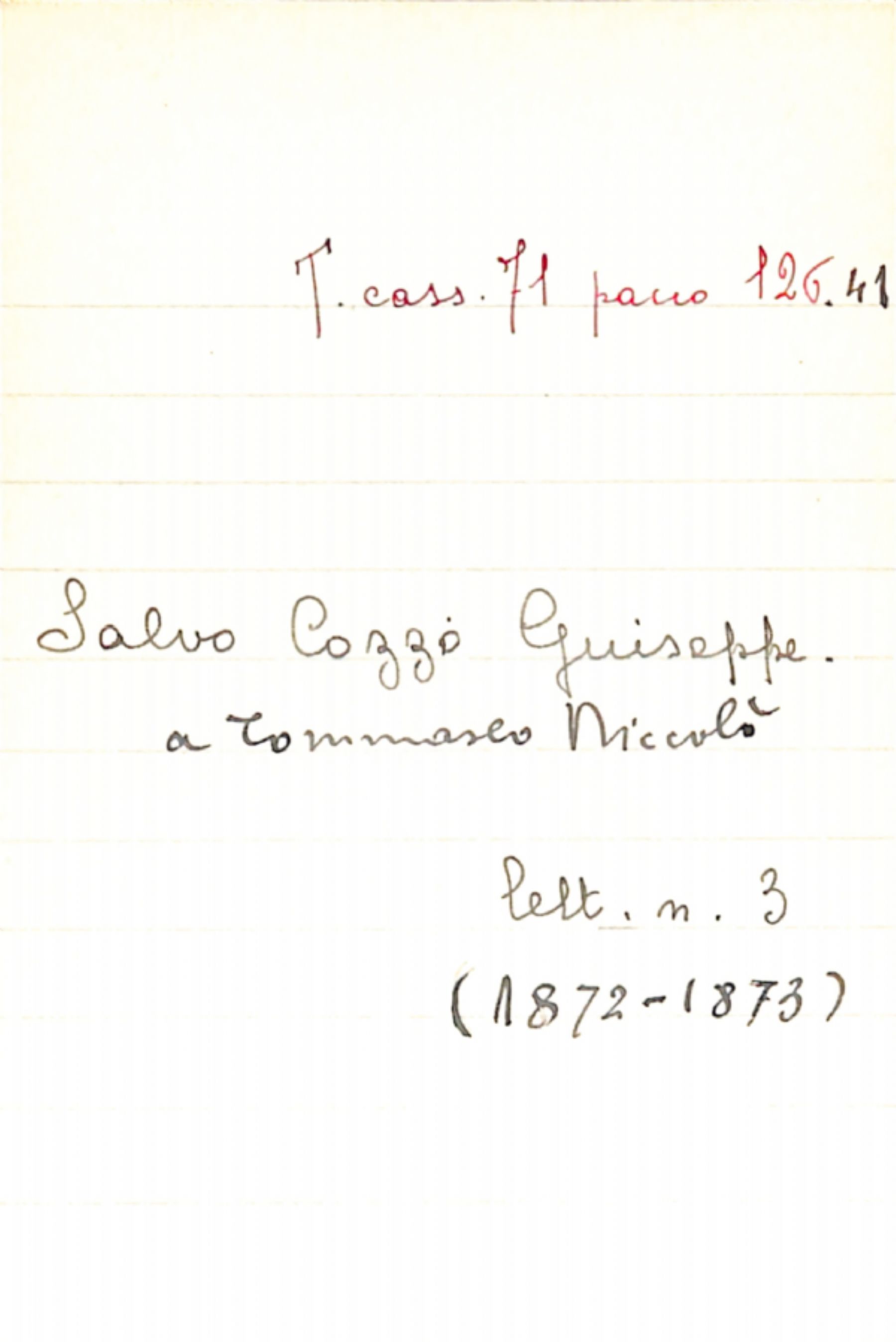 Fascicolo Salvo Cozzo, Giuseppe a Tommaseo, Niccolò