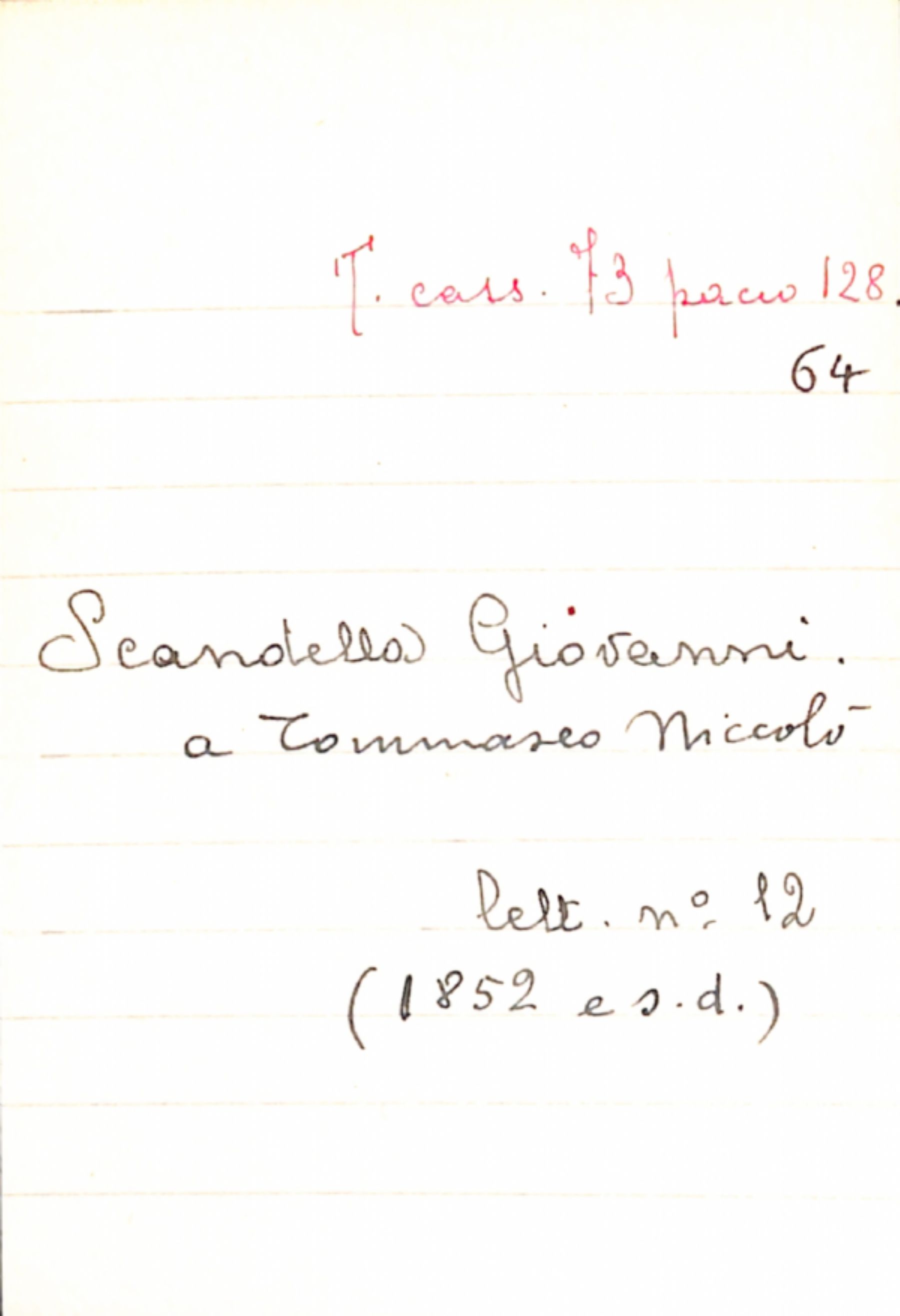 Fascicolo Scandella, Giovanni a Tommaseo, Niccolò