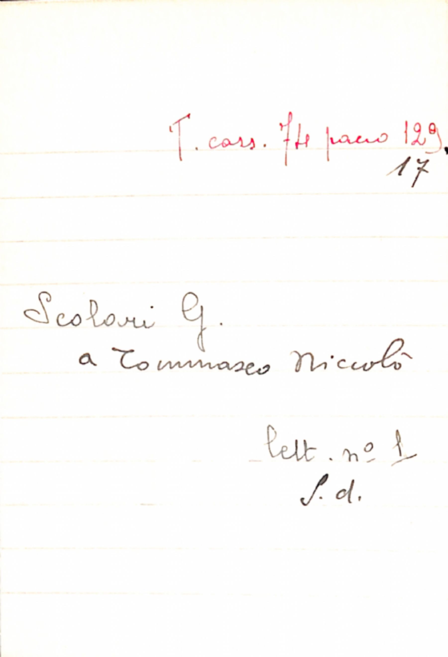 Fascicolo Scolari, G. a Tommaseo, Niccolò