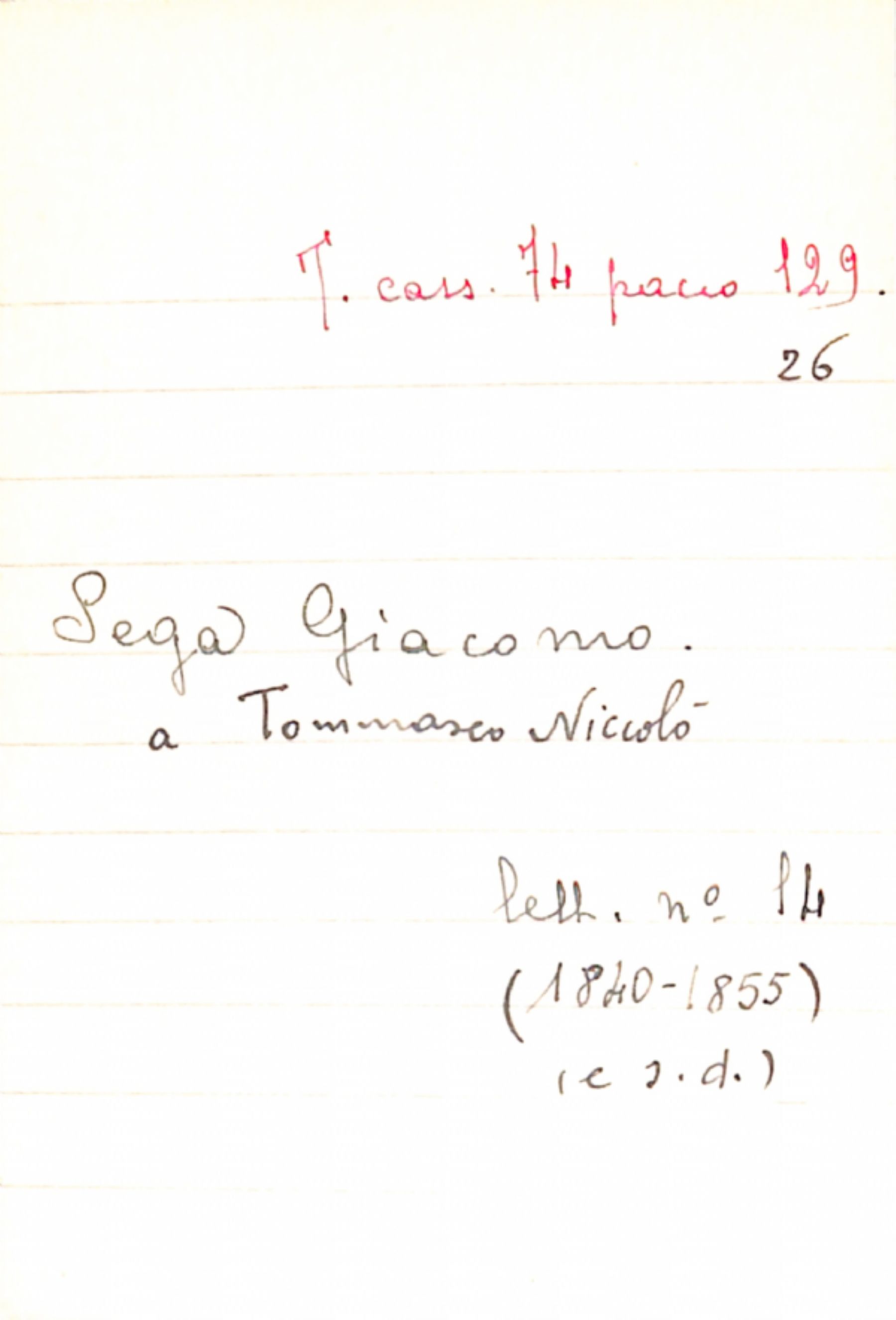 Fascicolo Sega, Giacomo a Tommaseo, Niccolò