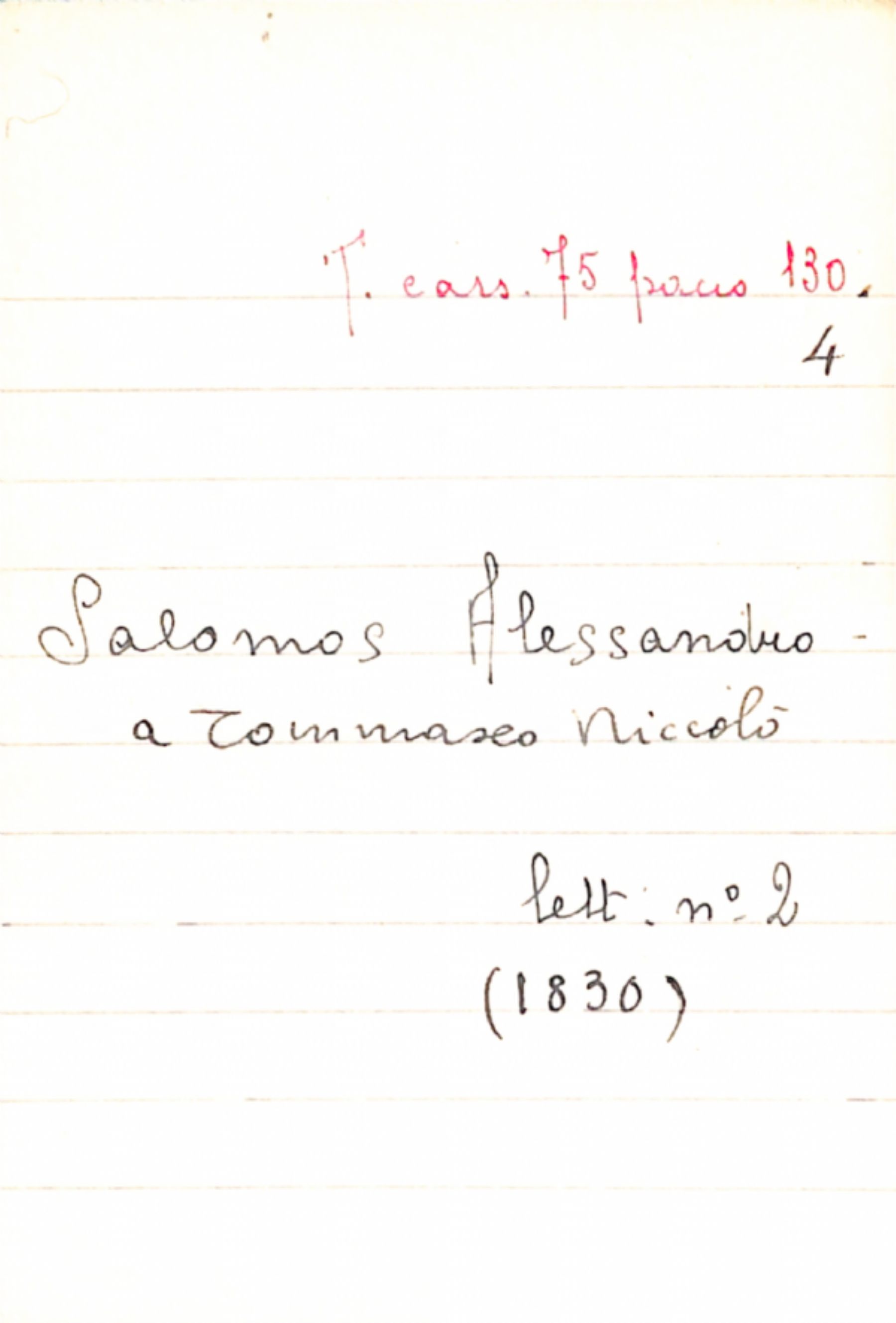 Fascicolo Salomos, Alessandro a Tommaseo, Niccolò