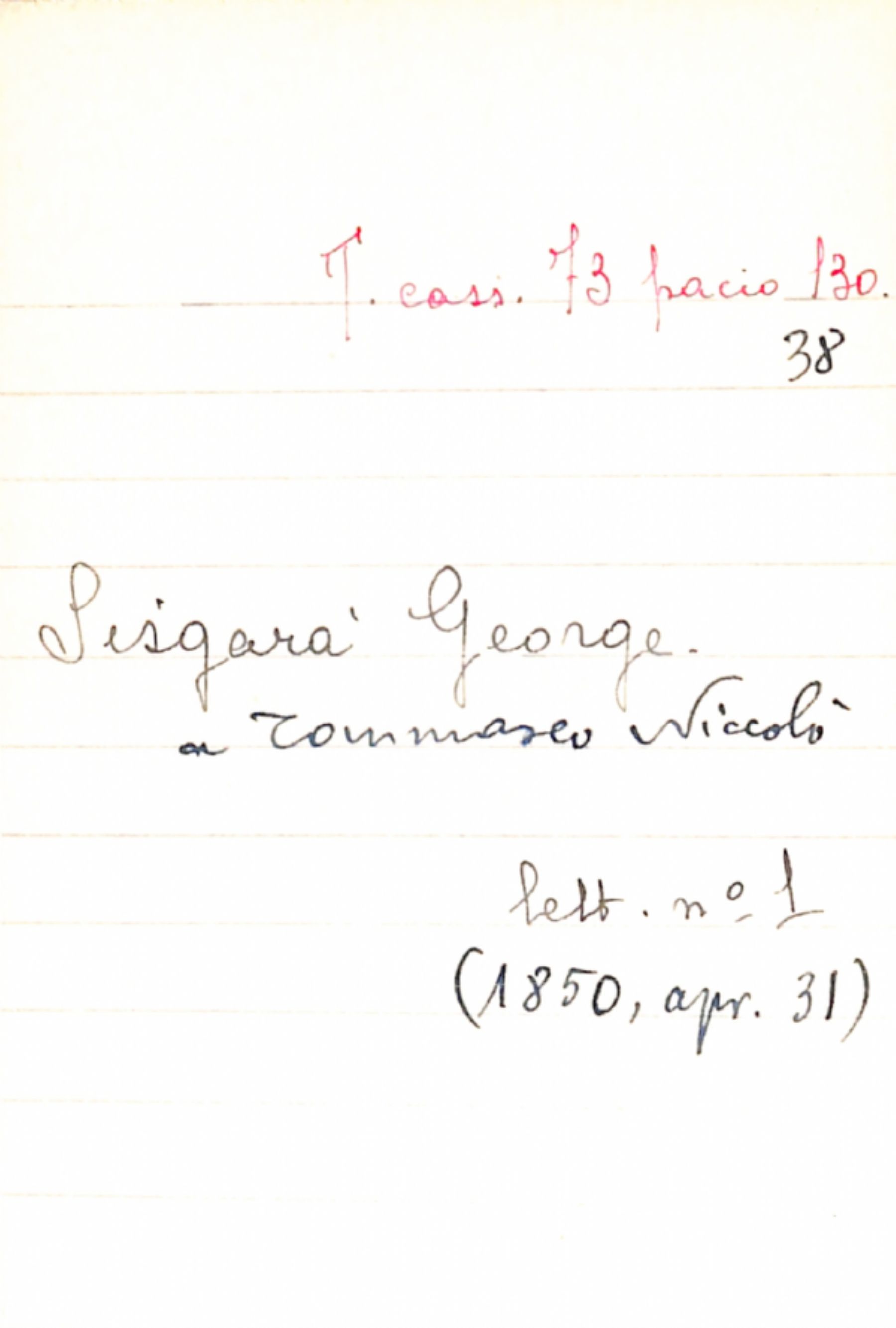 Fascicolo Sisgarà, George a Tommaseo, Niccolò