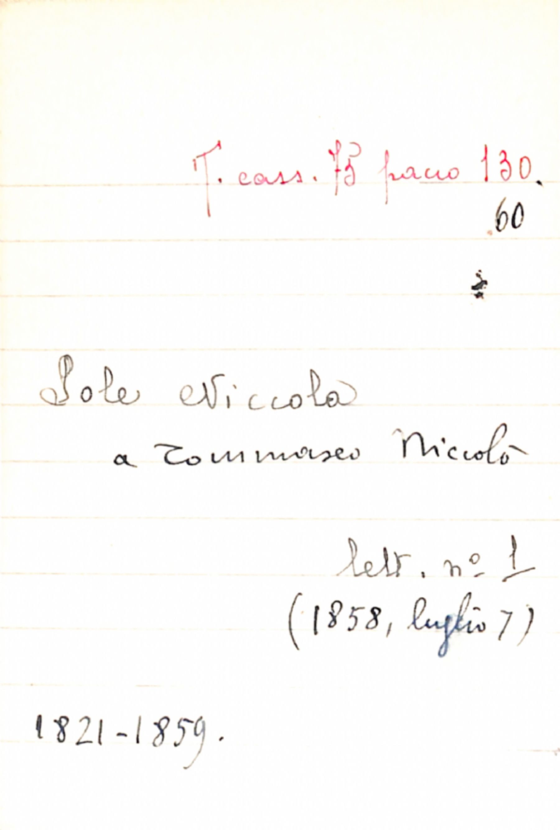 Fascicolo Sole, Niccola a Tommaseo, Niccolò